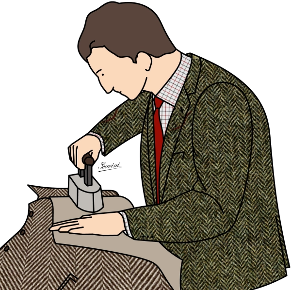 La veste et le pantalon s’usent à des vitesses différentes. Je conseille toujours d’avoir au moins un costume par jour de travail. Ou trois costumes, un blazer et une veste sport pour pouvoir faire tourner assez les pièces. Les riches n’abiment pas les vêtements, car ils en ont beaucoup ! Le soir, il convient de retirer le costume et de passer un vêtement plus décontracté, comme un chino. Cela évite d’abimer au quotidien ses pantalons. Le costume retournera sur son cintre. Le cintre doit être large et de la bonne dimension pour bien soutenir l’épaule. Il faut vider les poches. De temps à autre, un coup de brosse suffit. Pour ma part je plis mes pantalons sur la barre du cintre, en prenant soin de replacer les plis. Vous pouvez aussi suspendre le pantalon par les pieds, ou le placer dans une presse. J’en ai une sur mon valet, non chauffante, et c’est pas mal, mais sans plus.