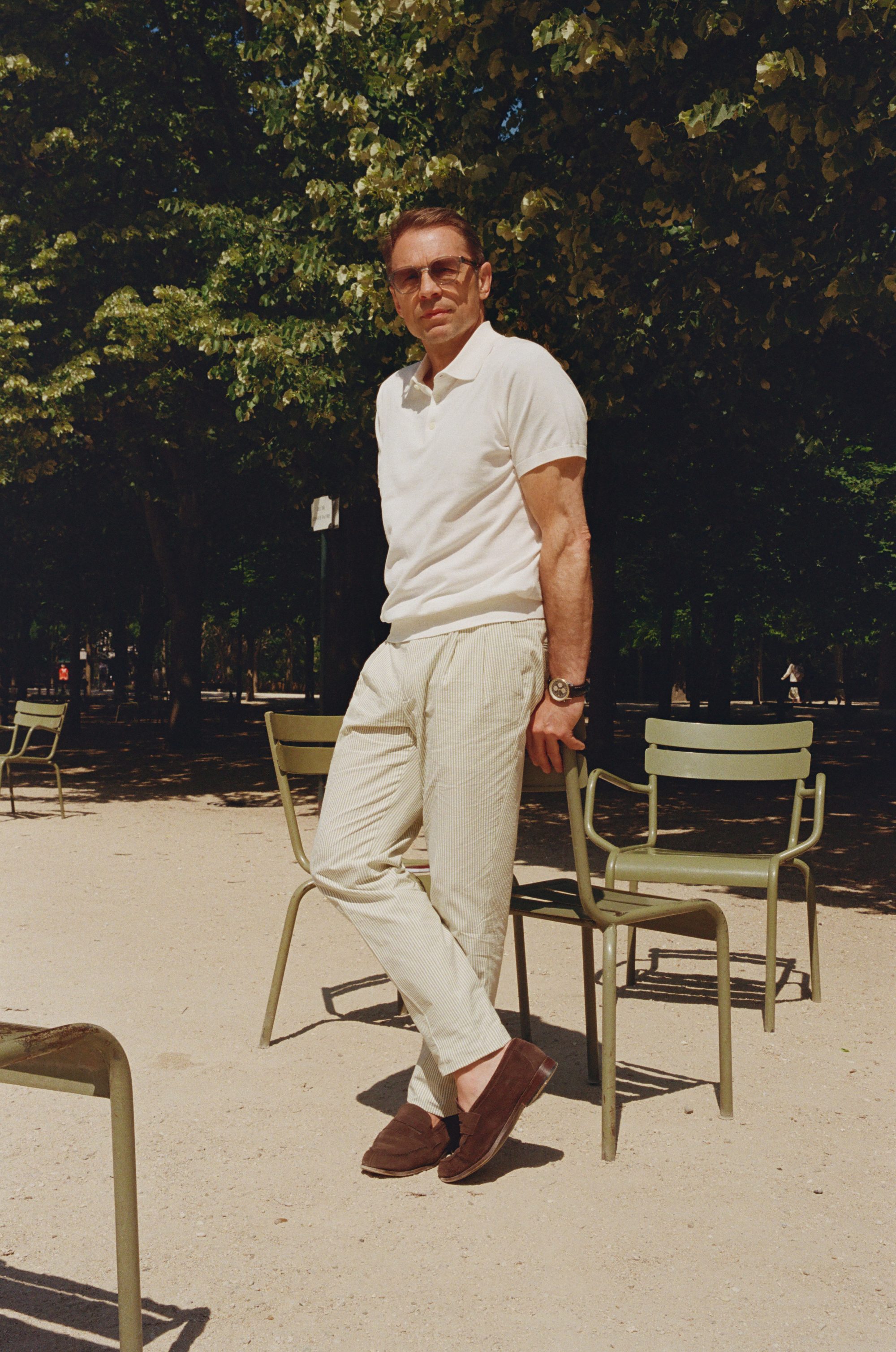 Dans cette série Silhouettes, Guillaume Kerner revient dans un lieu chargé de souvenirs, dans des vêtements qui racontent autant que les cicatrices d’un champion. Sa manière de se tenir, de marcher, de s’habiller, dit tout d’un homme qui n’a jamais dissocié le mouvement du style — ni la rigueur de l’élégance.