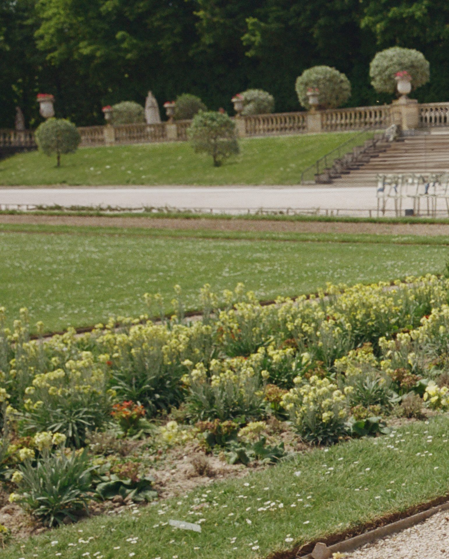 Ancien champion du monde de Muay Thai, Guillaume Kerner porte autant les vêtements que les souvenirs. Photographié au Jardin du Luxembourg, lieu de ses courses matinales lorsqu’il s’entraînait tout jeune, il revient là où tout a commencé — à deux pas de son premier club de boxe.