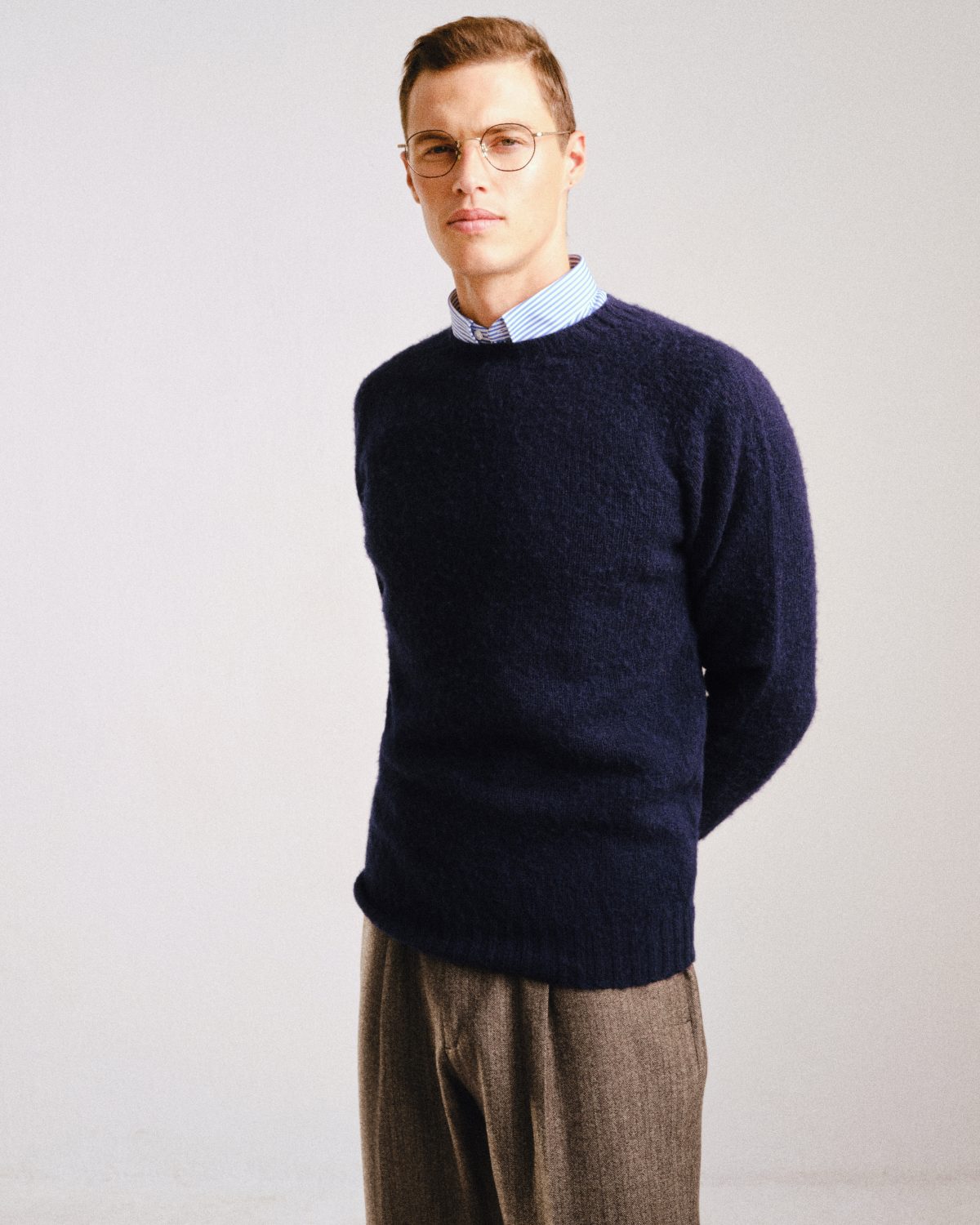 Découvrez notre pull col roulé en pure laine vierge Shetland, issu d’une filature écossaise. D’épaisseur moyenne, il est chaud et confortable, doté d’une coupe droite et d’un col roulé, il se porte facilement seul ou sous une veste. Fabriqué en Écosse dans des lainages locaux de grande qualité.