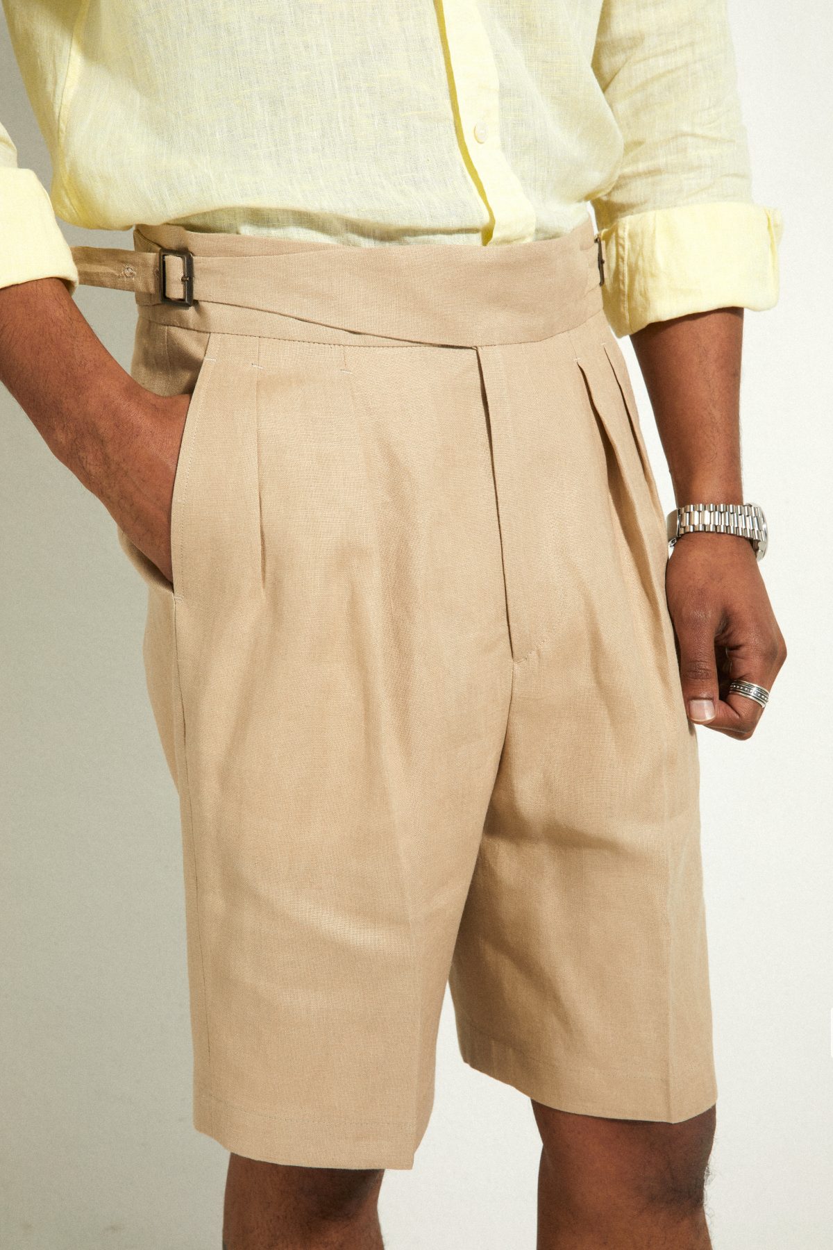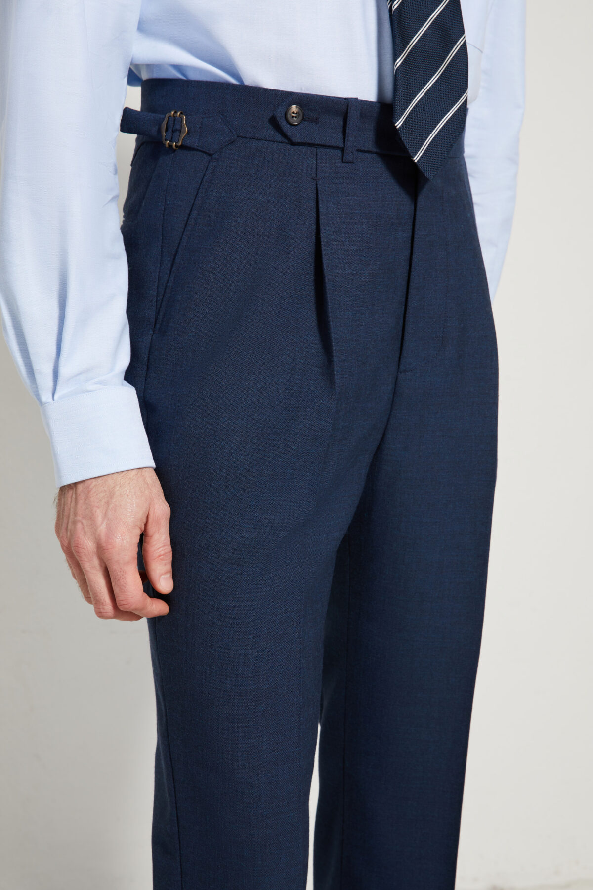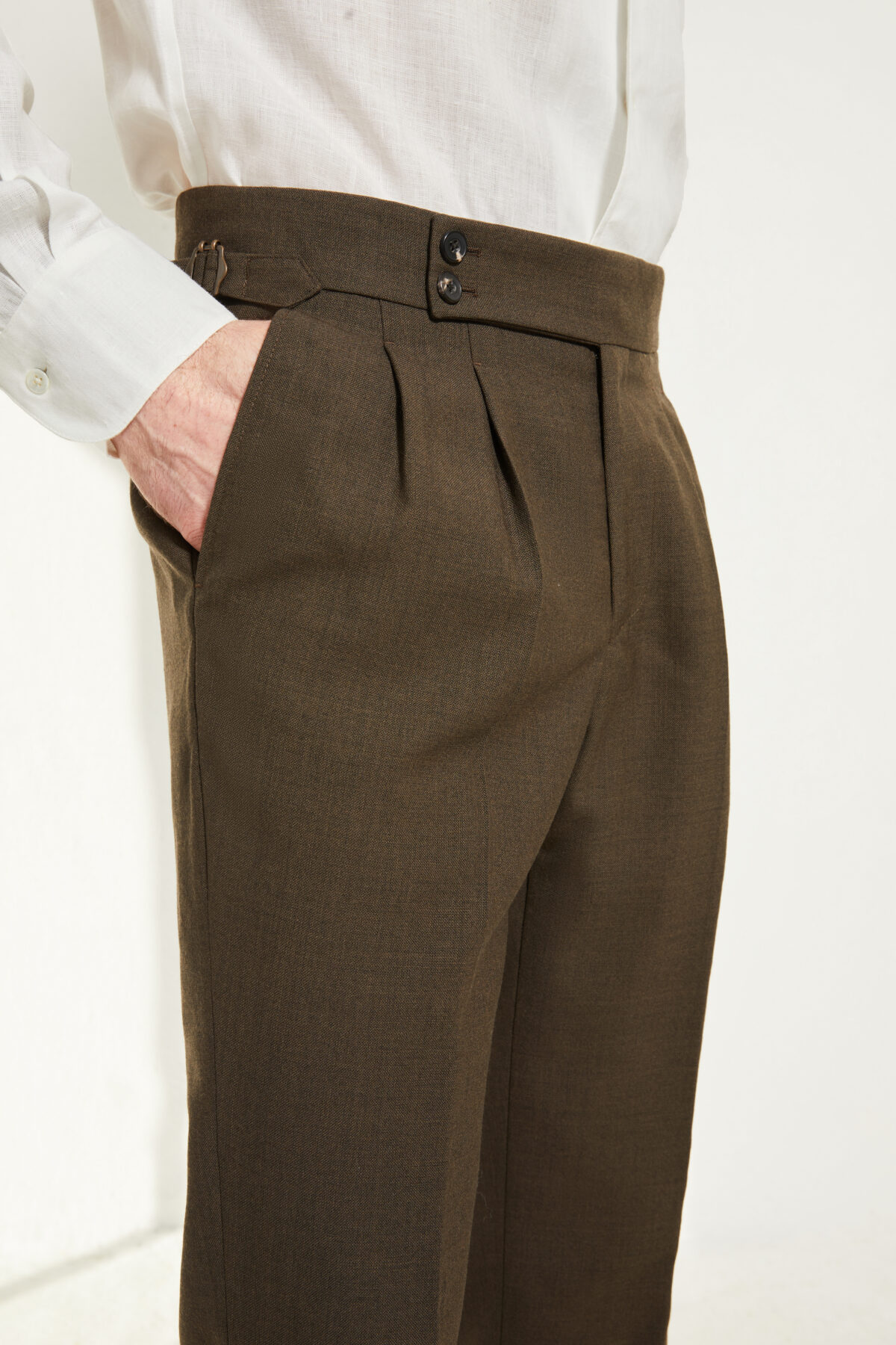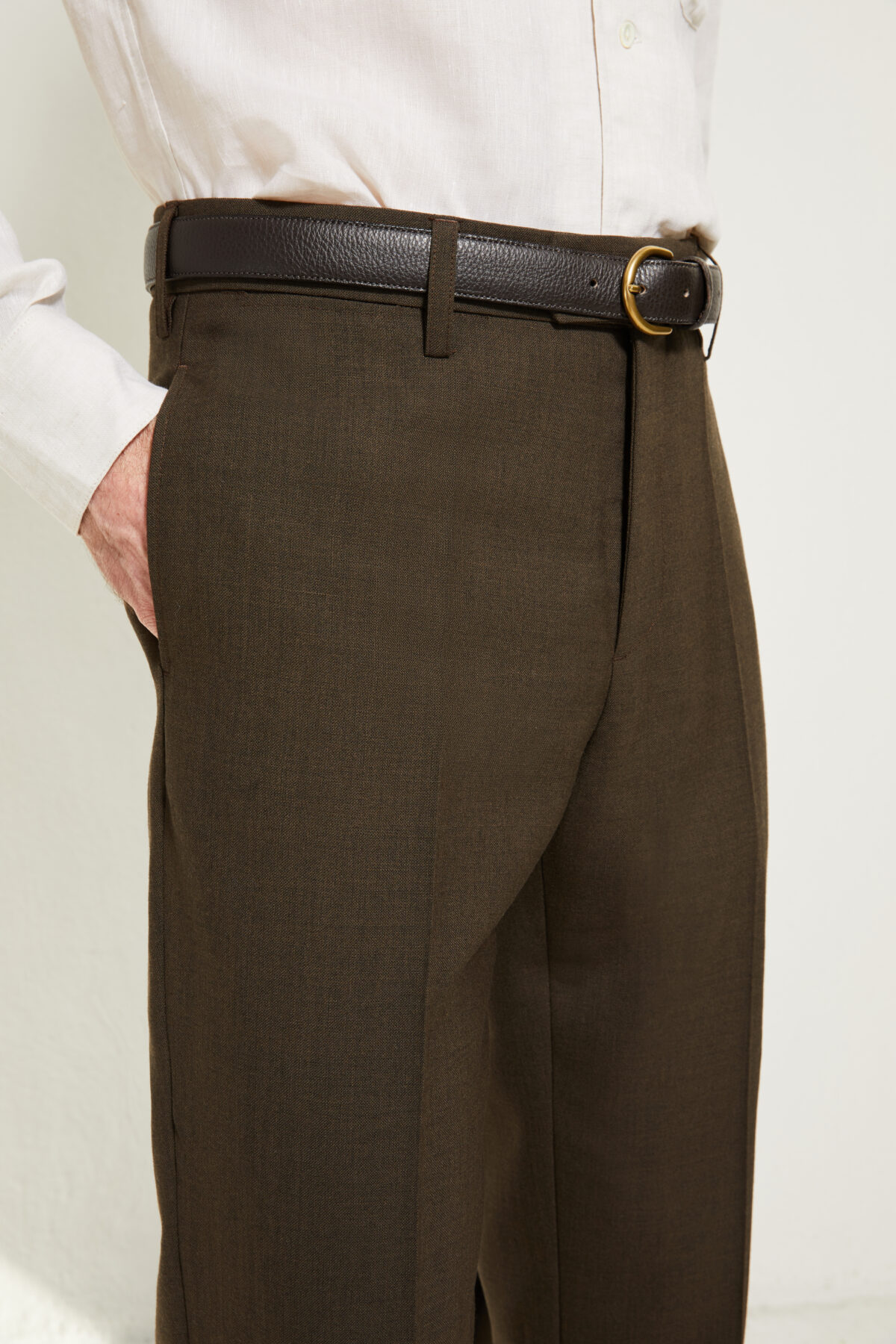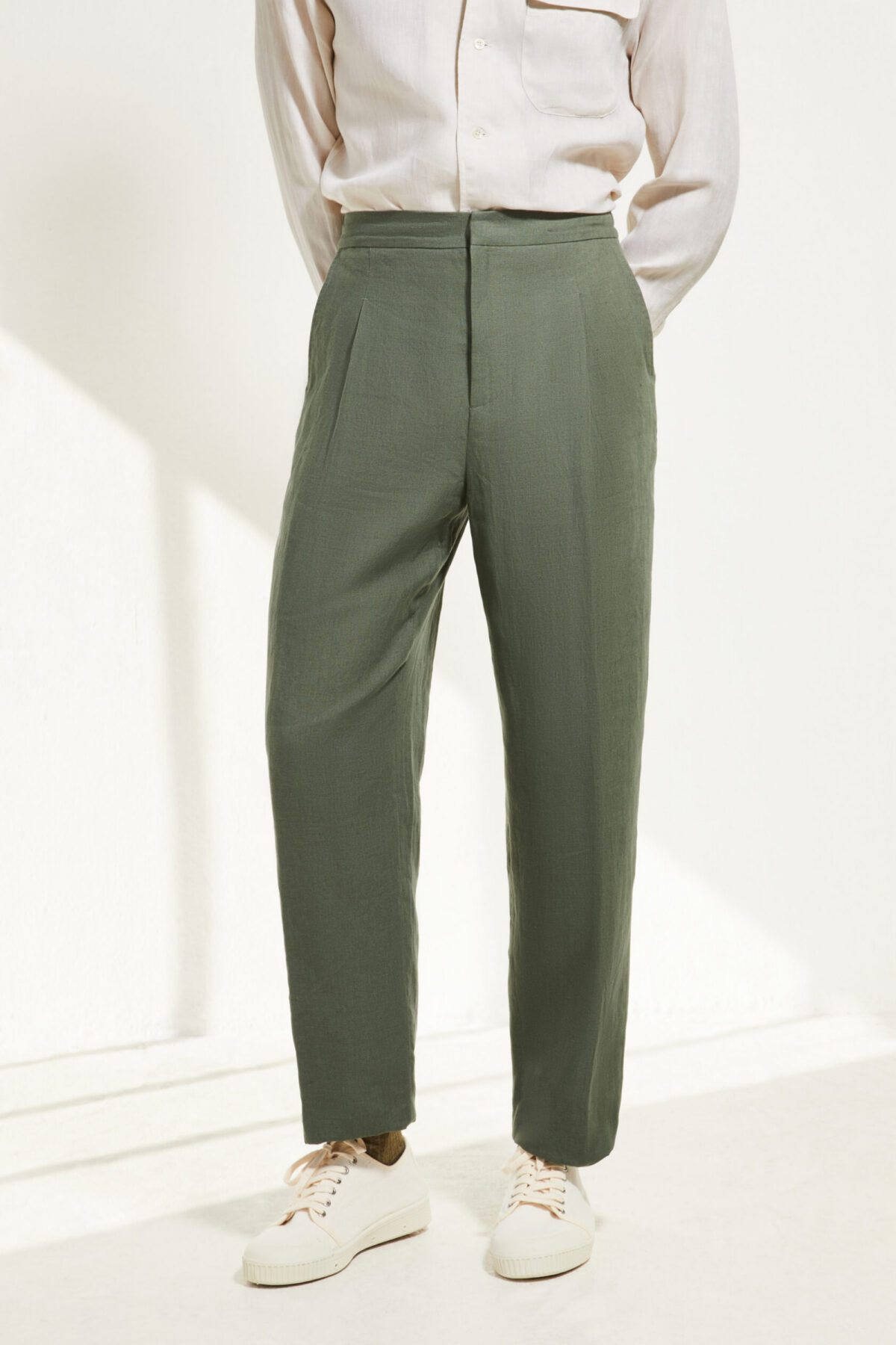Elle se porte à la taille naturelle, sur le haut des hanches. Sa coupe ajustée, ses doubles pinces et détails tailleurs lui donne une allure sartoriale résolument contemporaine.