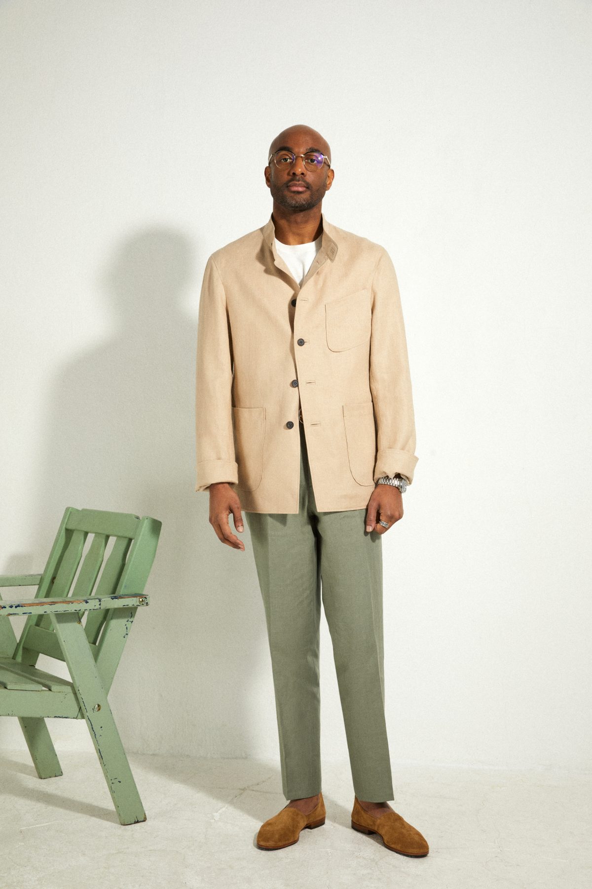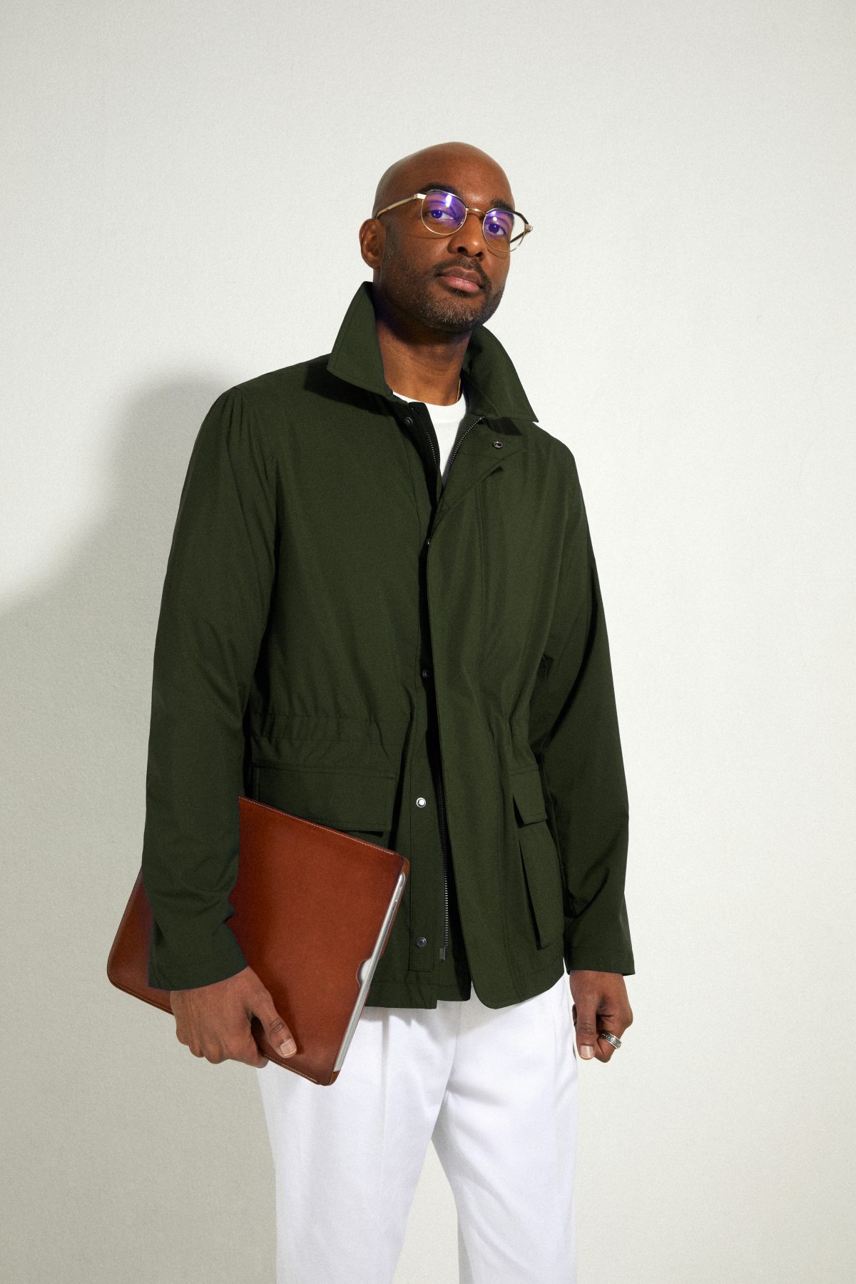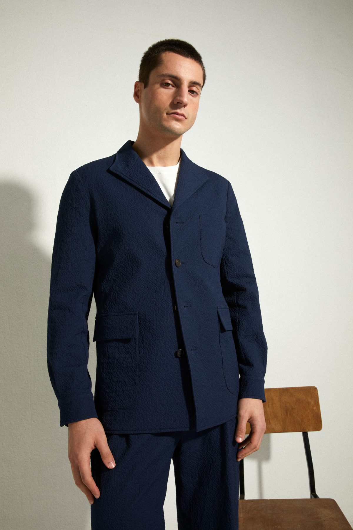 L’idée de cette veste est apparue l’été dernier, lors d’épisodes de fortes chaleurs, Julien Scavini cherchait une petite veste légère pour sortir à scooter et ainsi ne pas être seulement en chemise. La possibilité de fusionner une veste de travail en simple coton avec l’allure d’une veste en coton ciré est apparue en dessin.