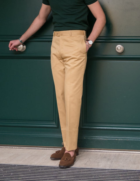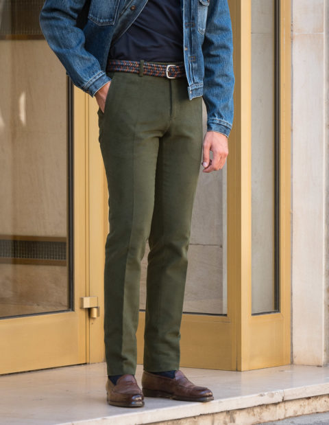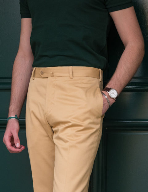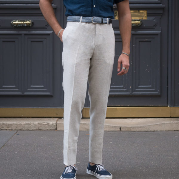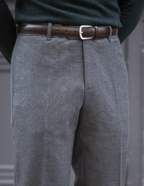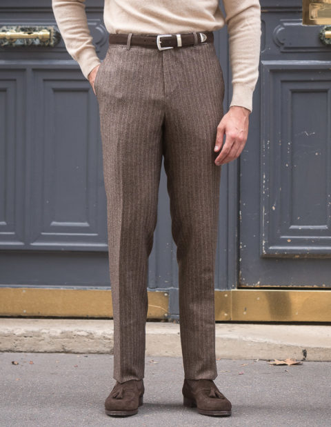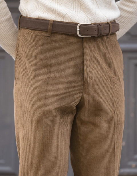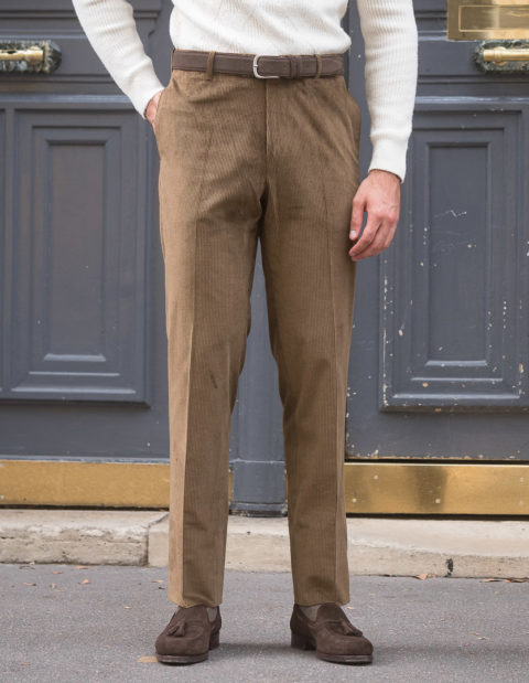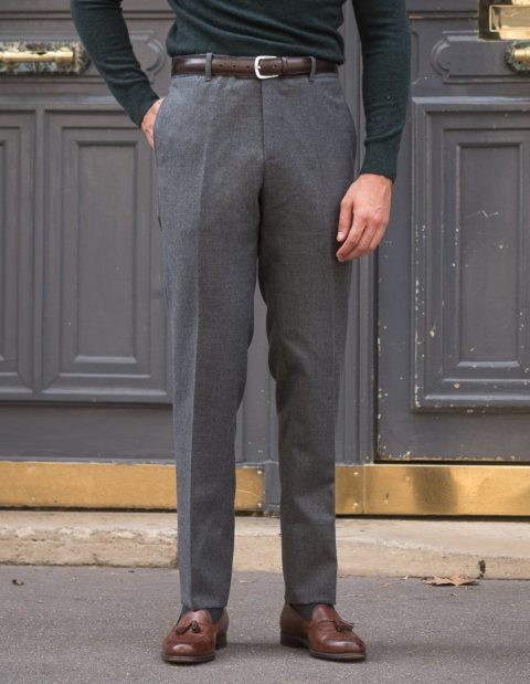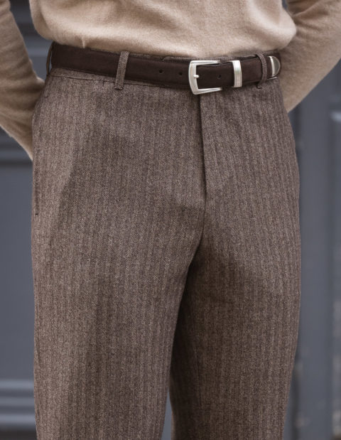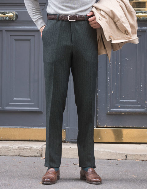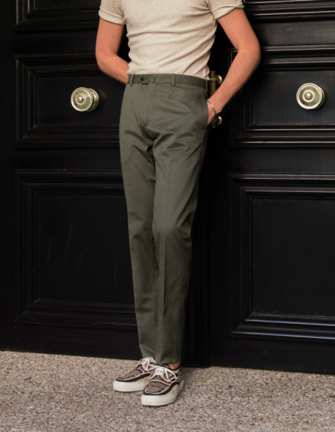 Our classic cut is dedicated to men who are looking for pants with timeless lines. Worn at the natural waist, just above the hips. The thigh is comfortable and allows a perfect fall. However, and this is the modern twist, we have slightly refined the bottom.