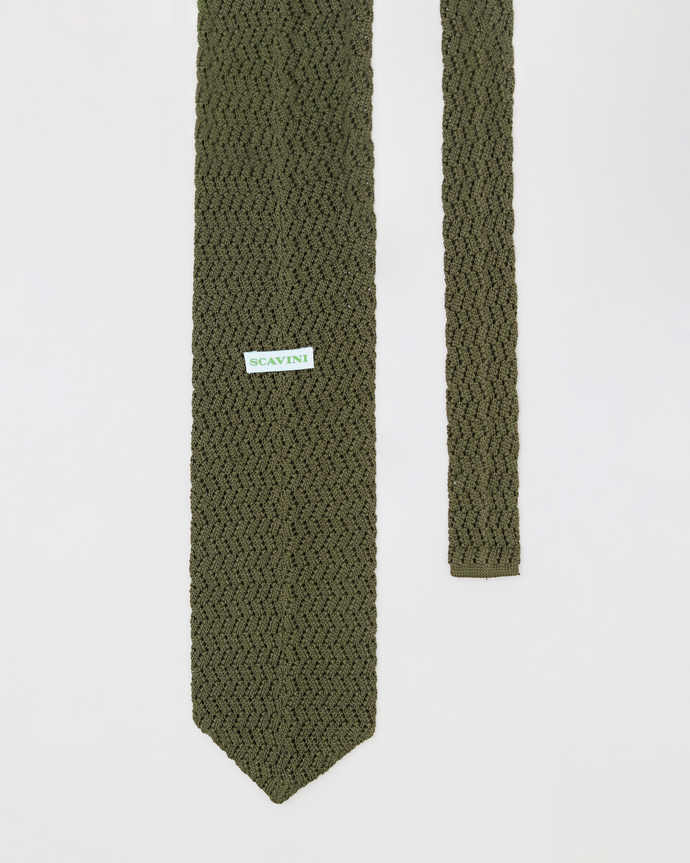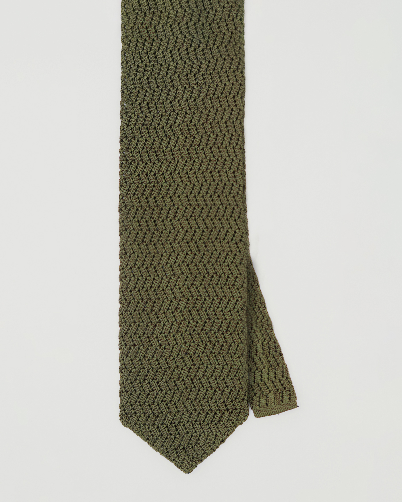 Our knitted tie is crafted from luxurious silk. It stands out with its zigzag knit pattern and wide tip, adding a touch of elegance to your outfits.