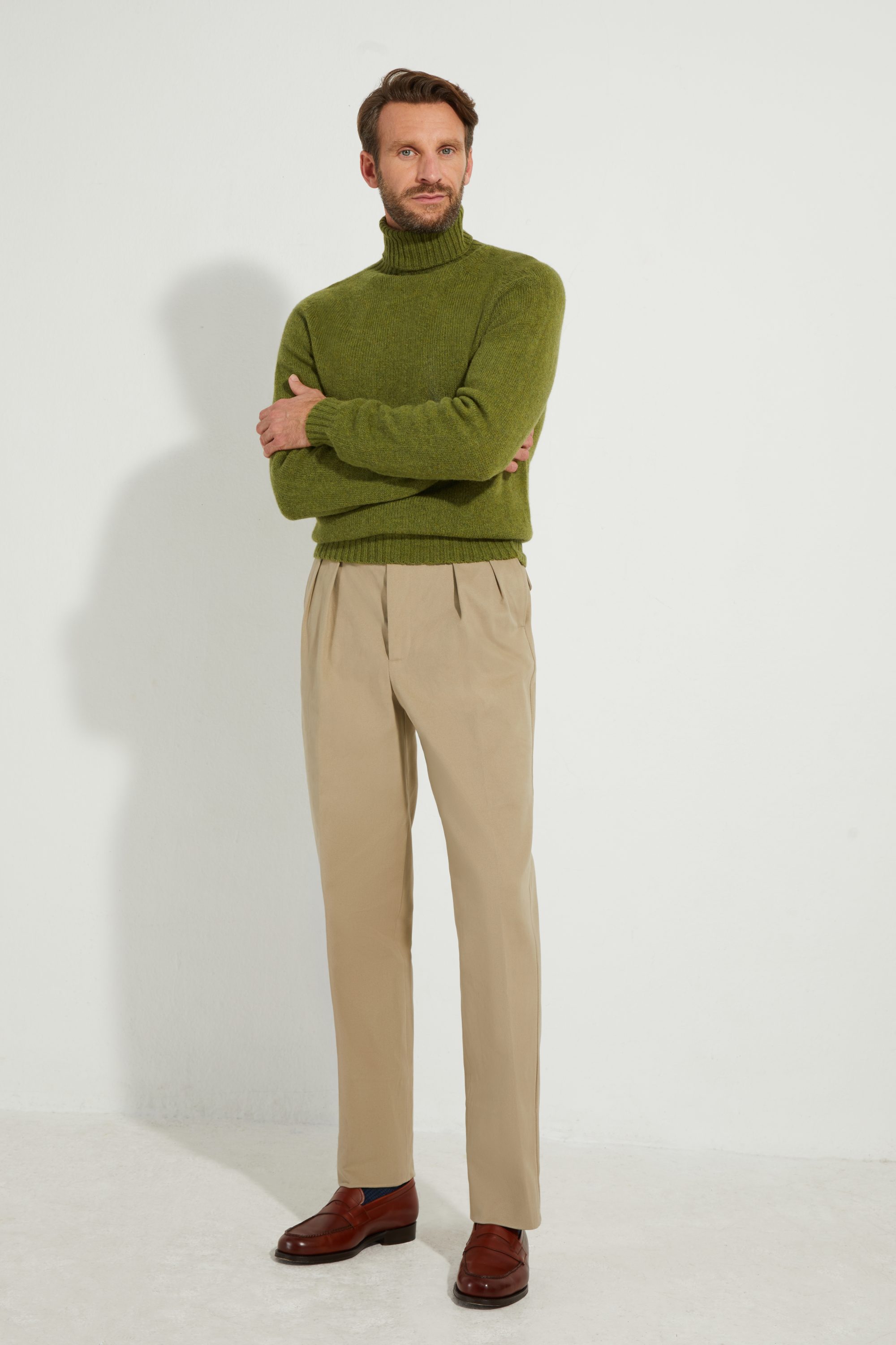 Our sweater is made from 100% pure Shetland virgin wool sourced from a Scottish mill.