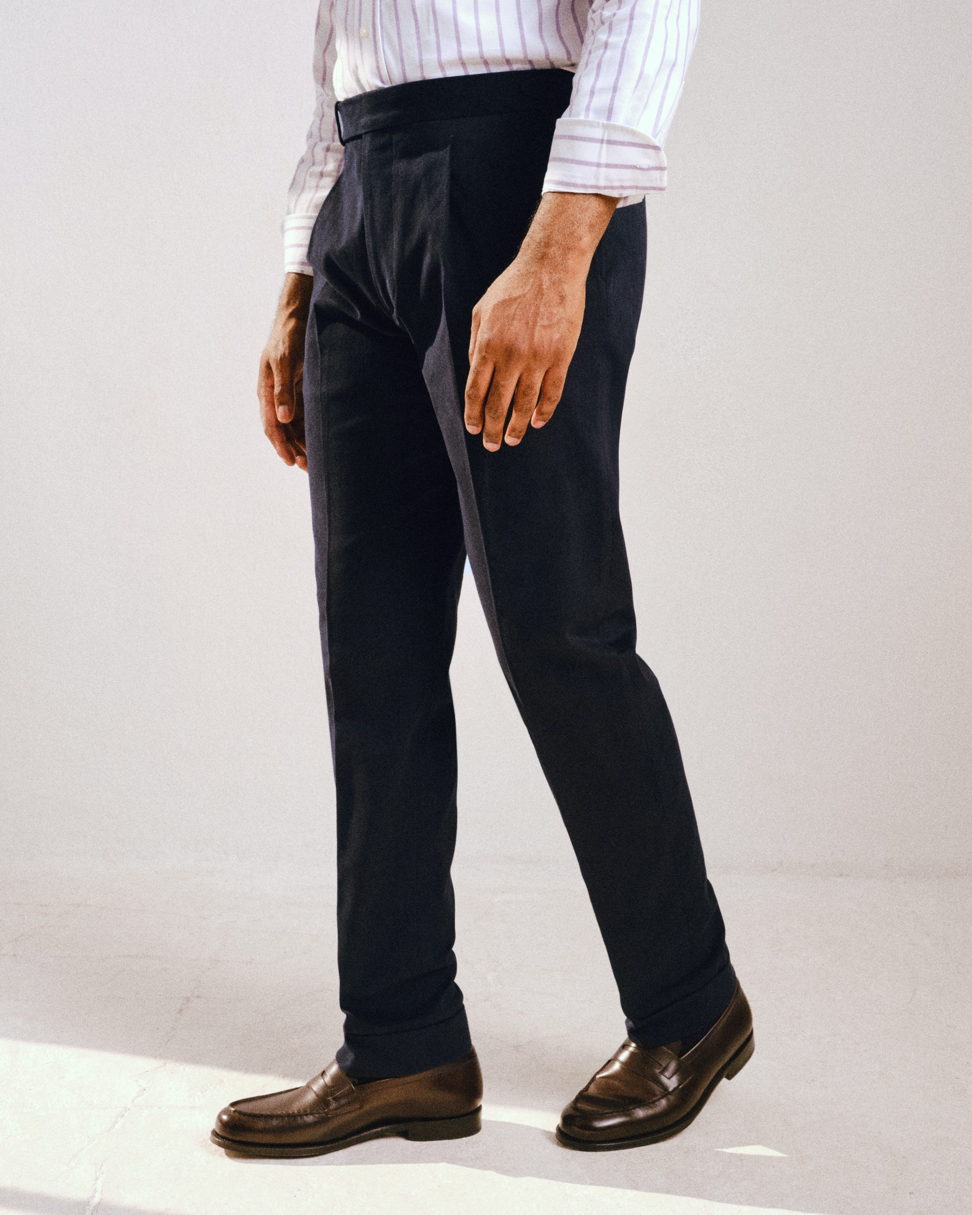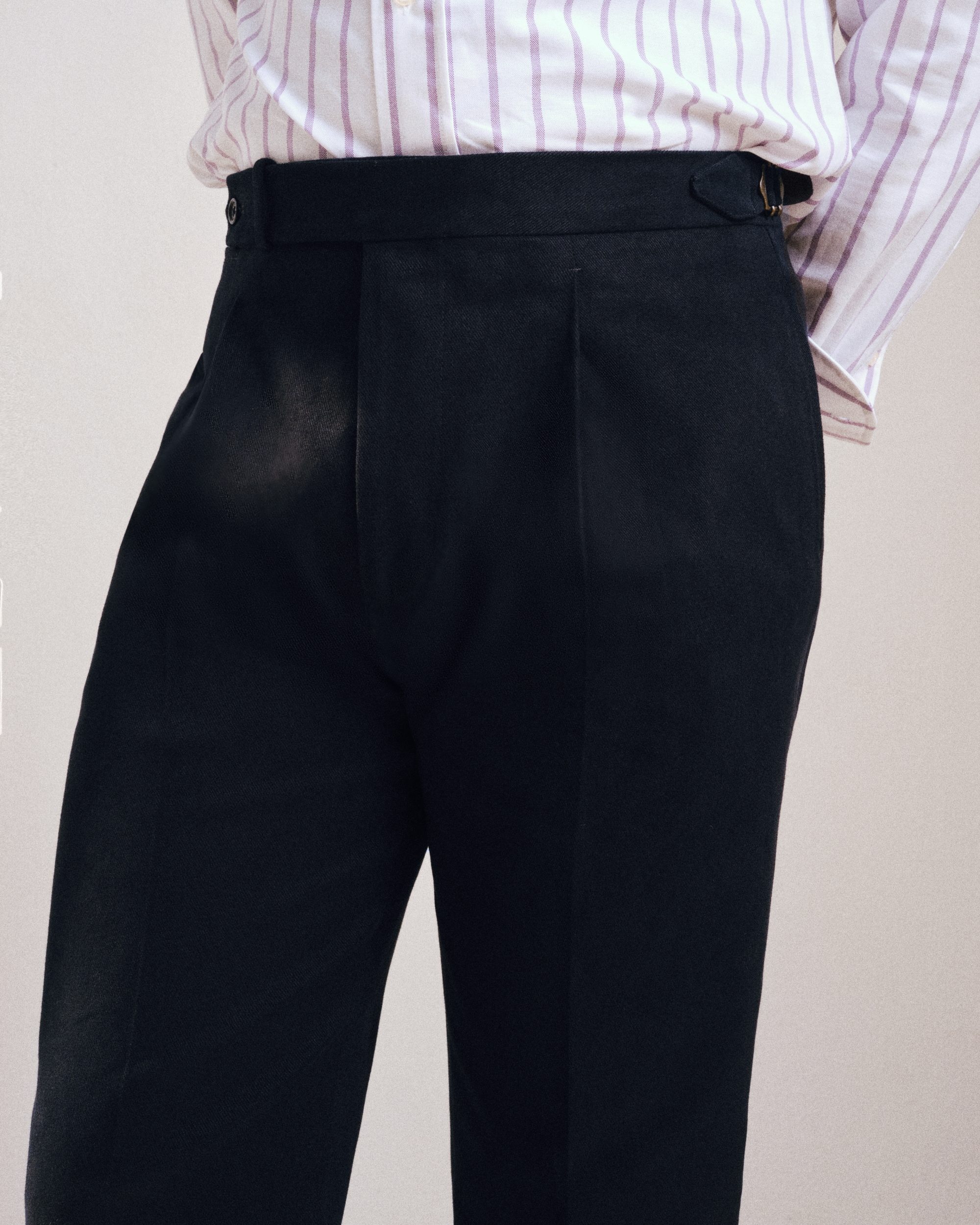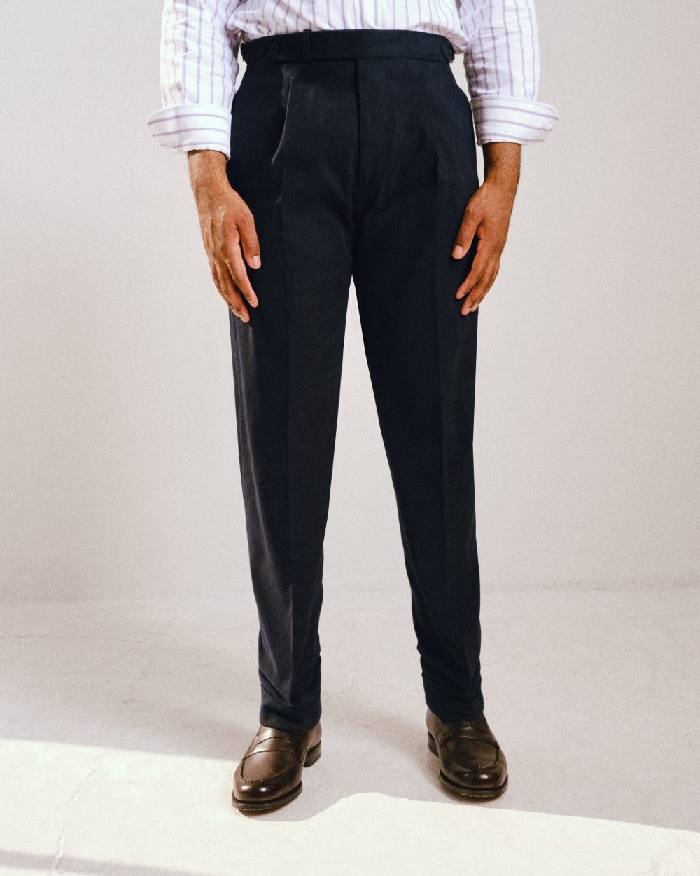 Notre pantalon est coupé avec une taille haute, conçu pour être porté à la taille avec une pince pour plus de confort et un style classique.