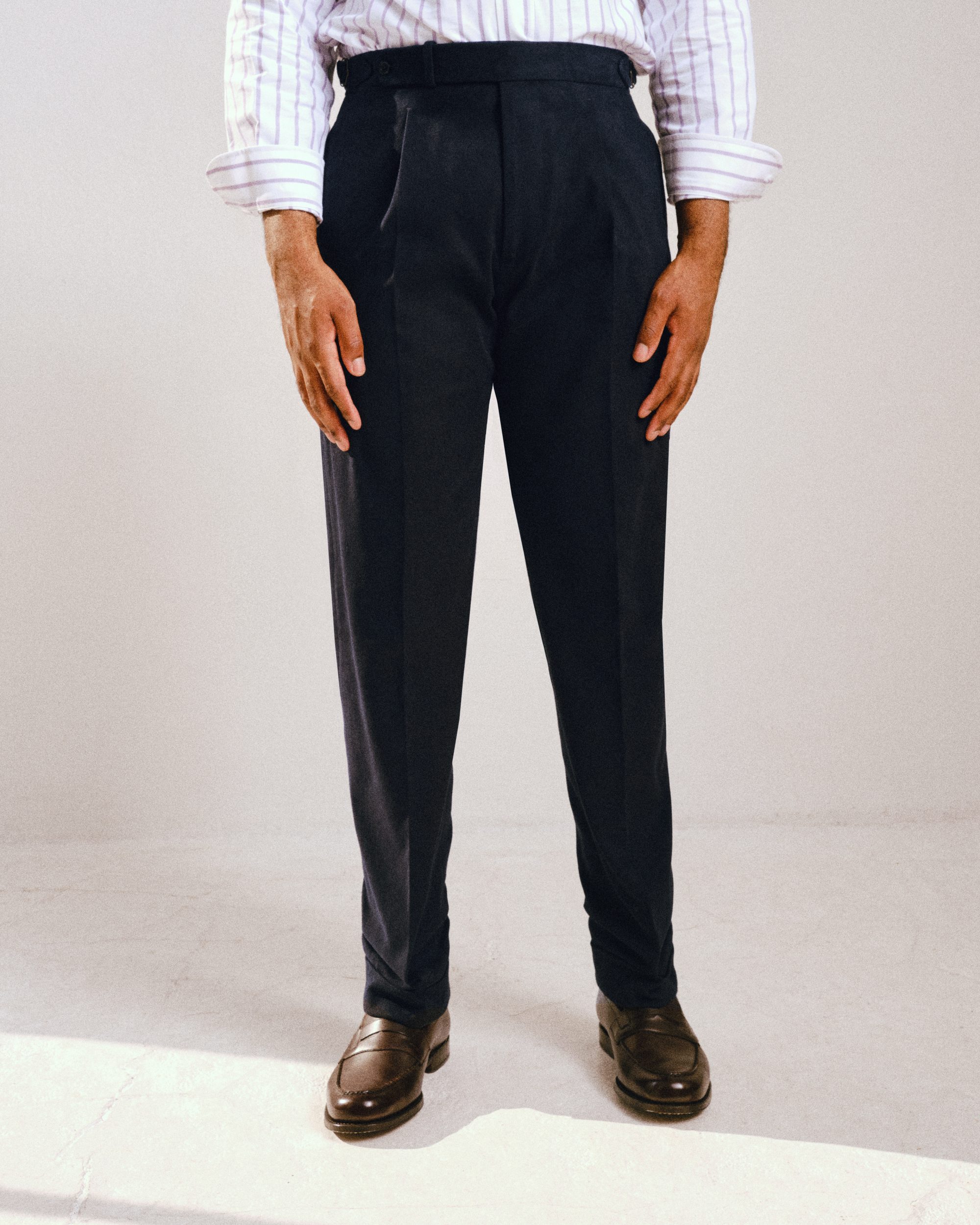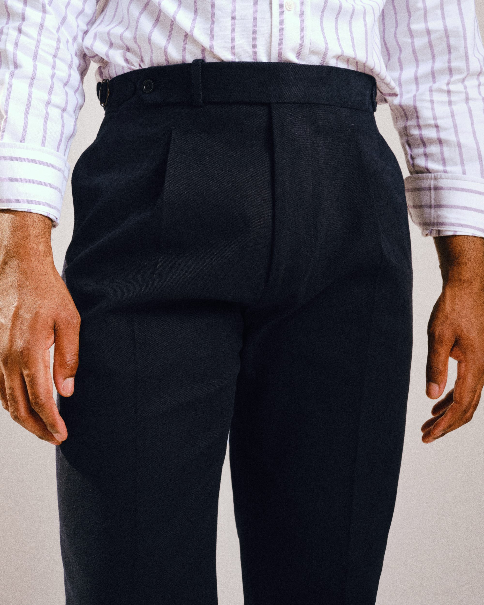 Fabriqué dans un coton sergé Duca Visconti (Italie), ce pantalon est conçu pour être porté pendant les mois les plus frais.
