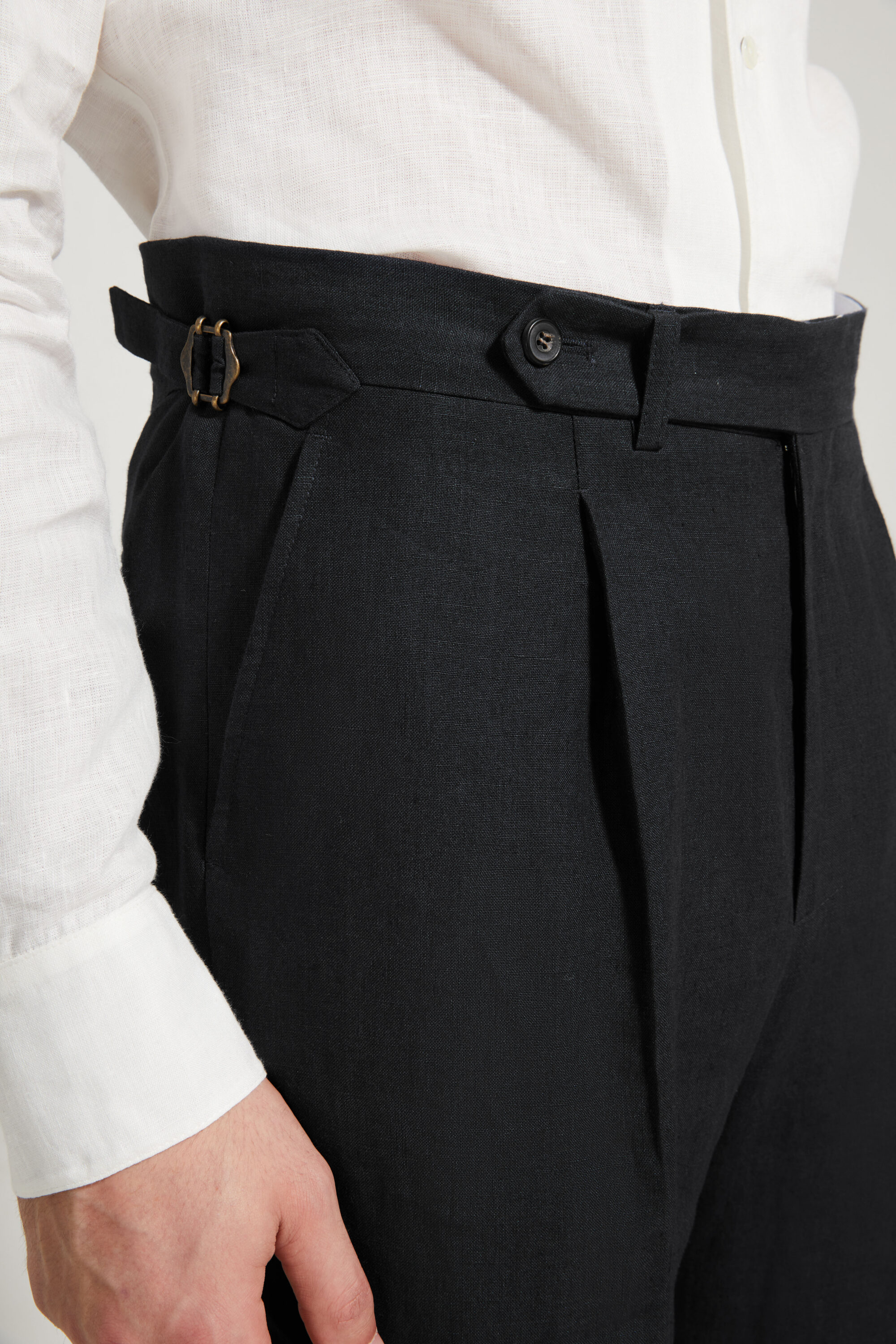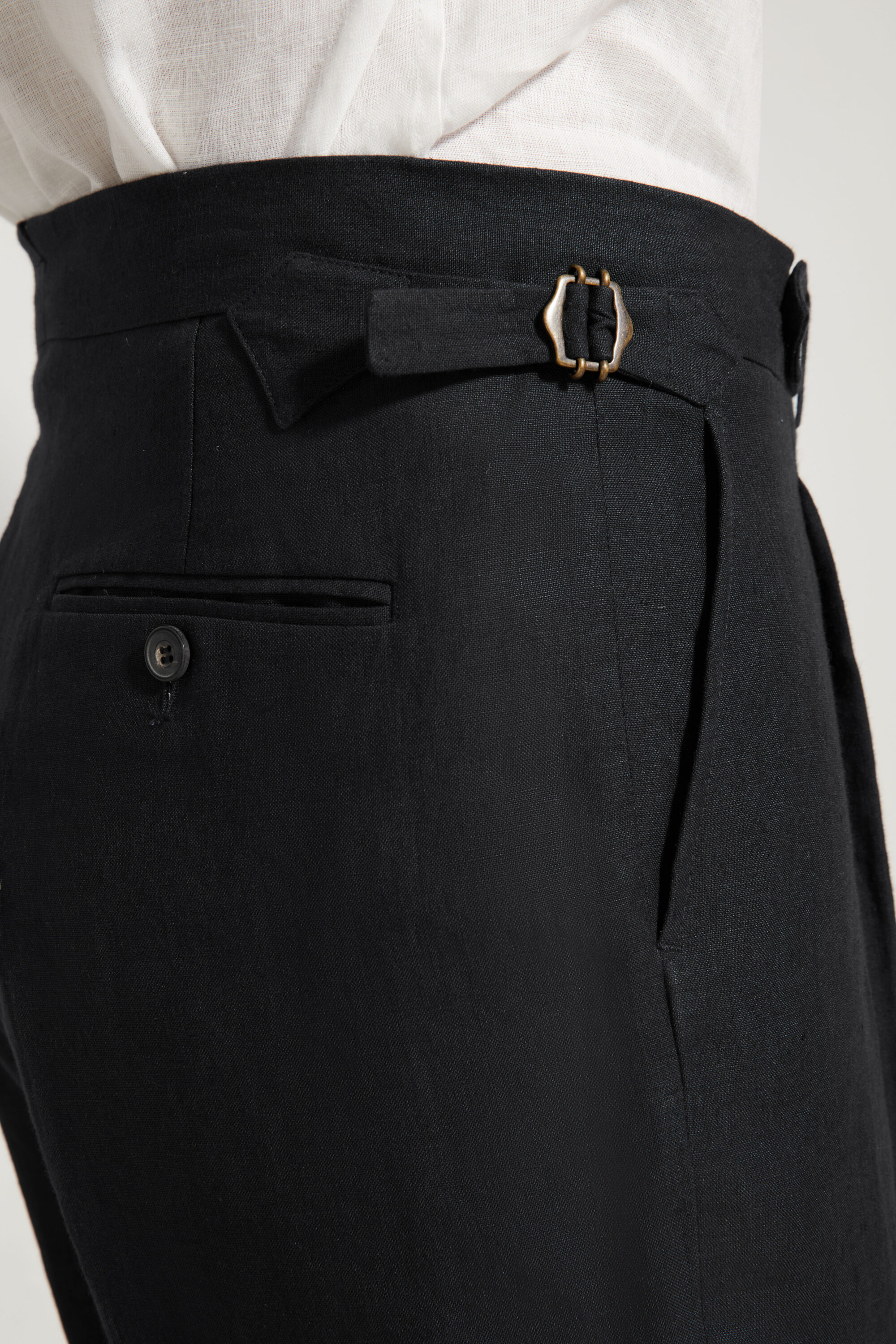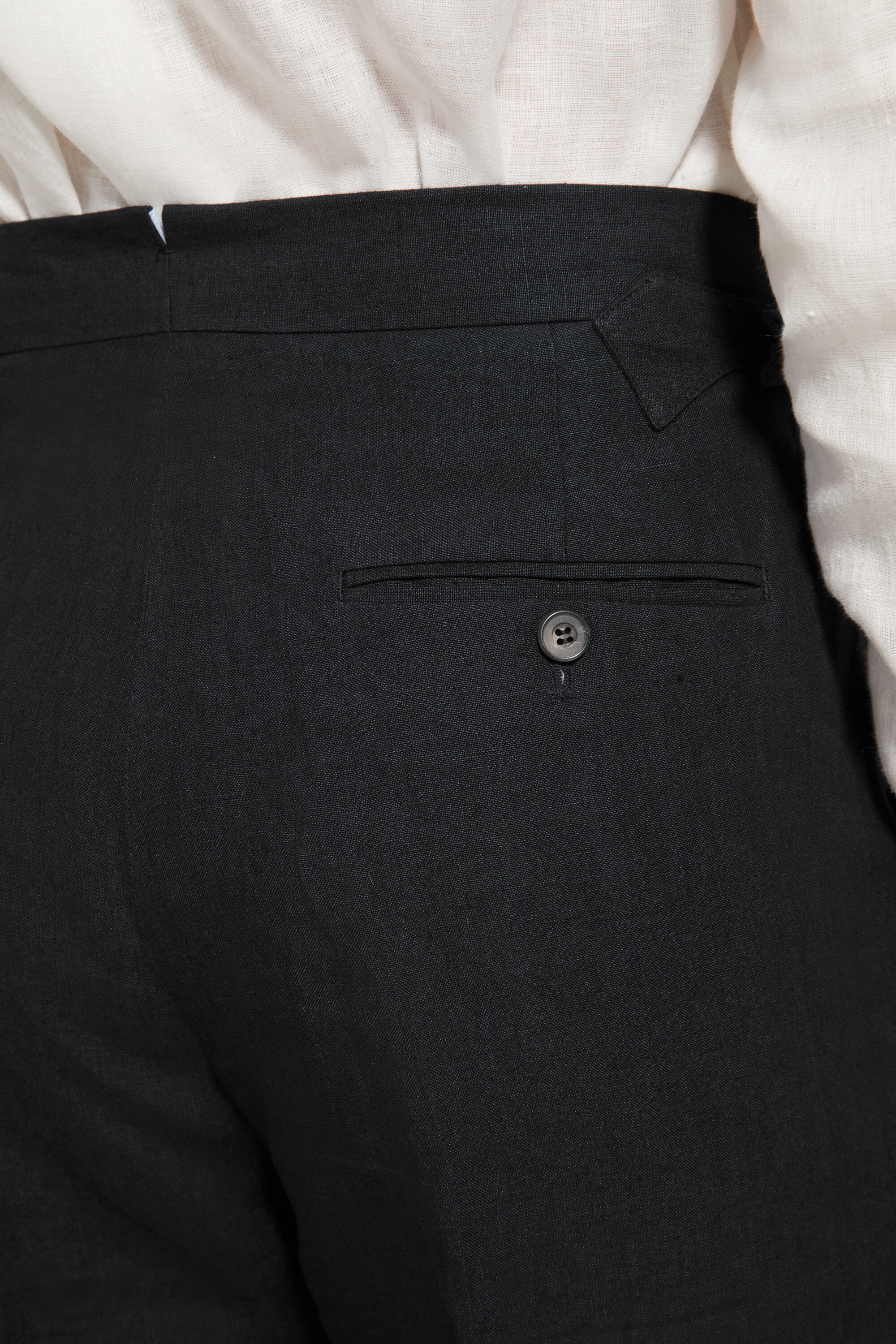 • Canvased waistband with an after-dinner split (V-split)