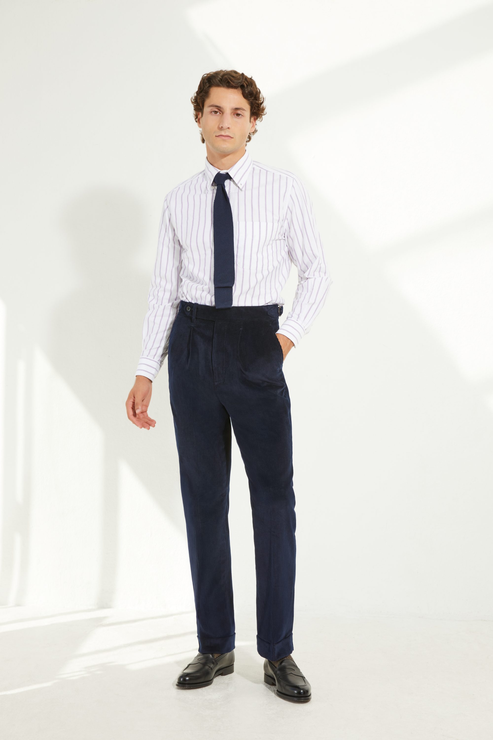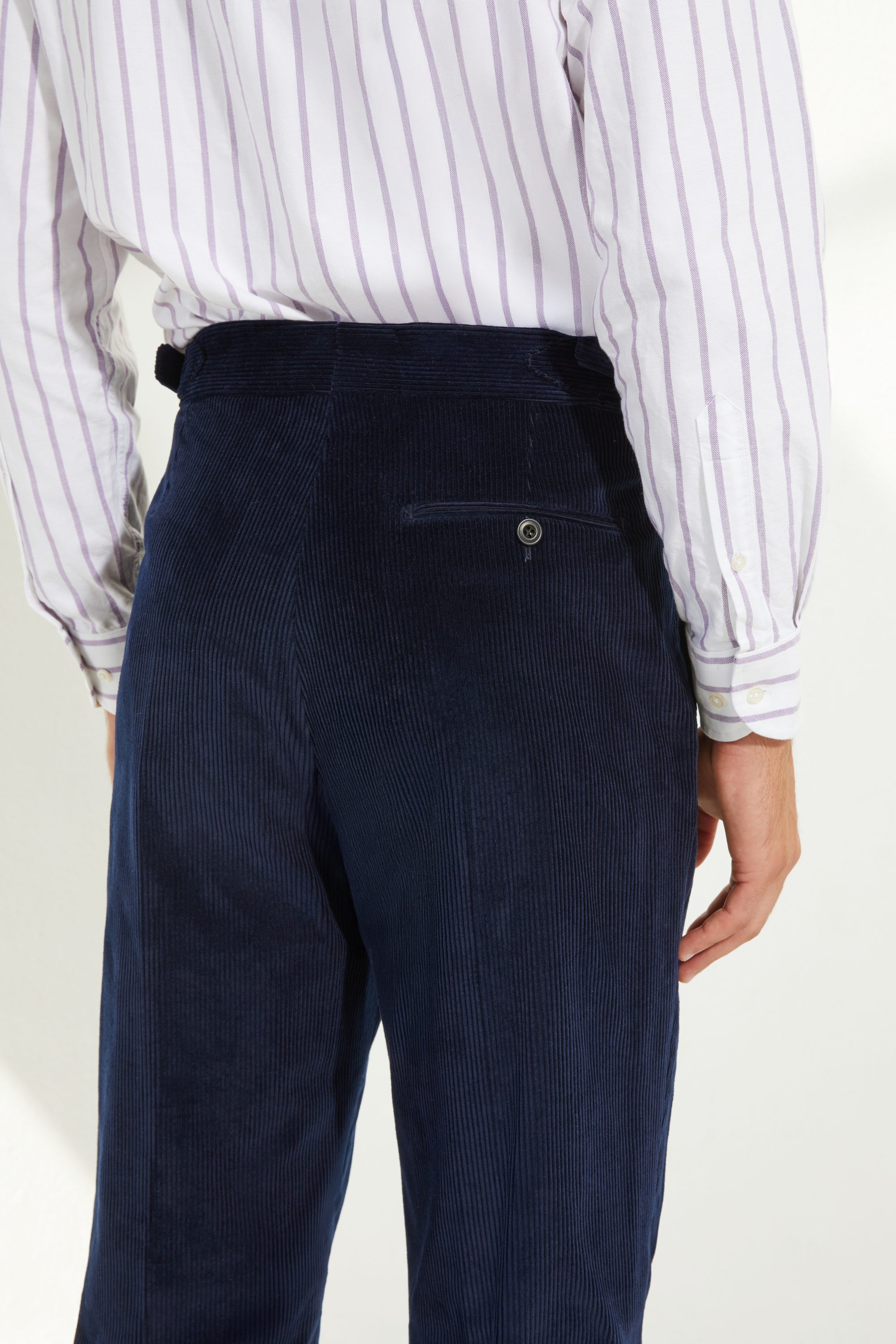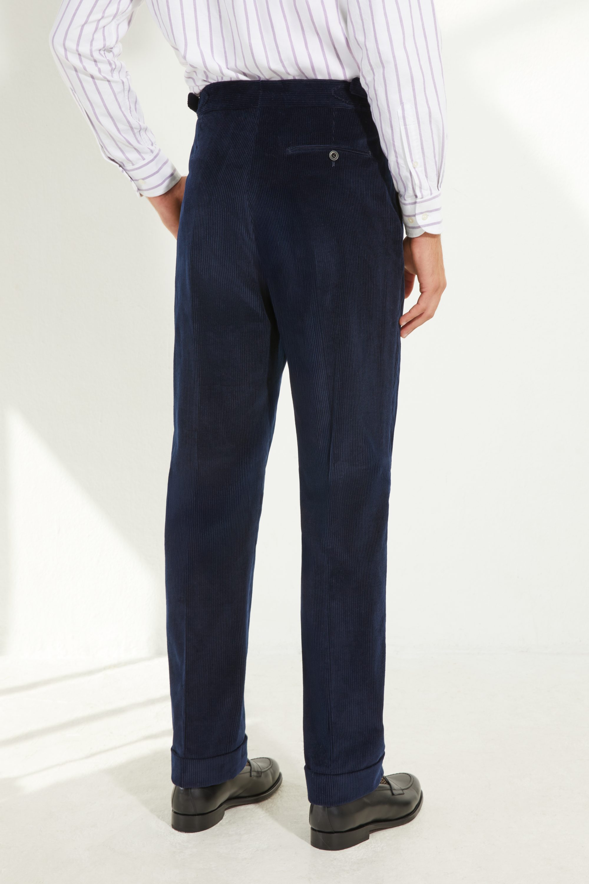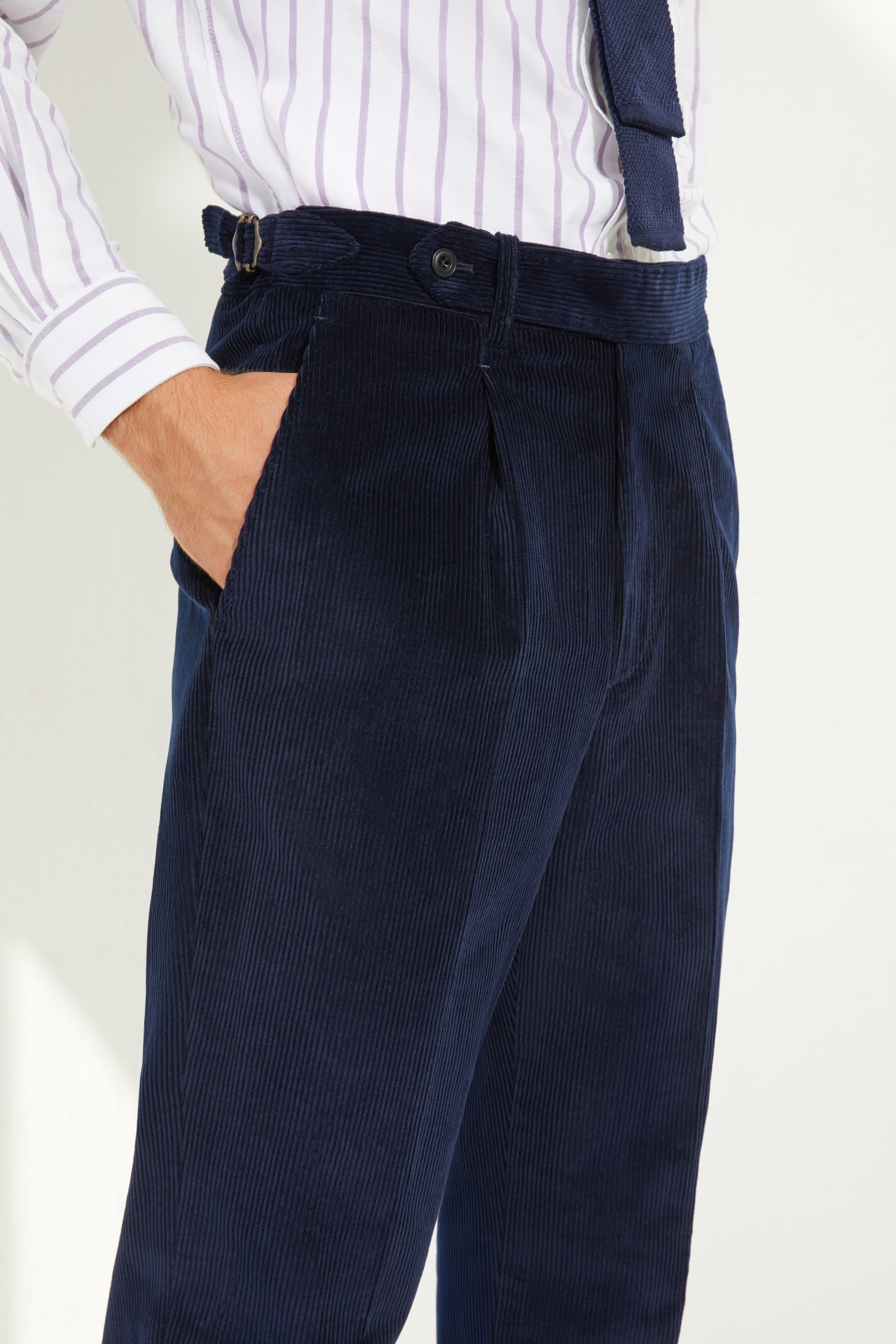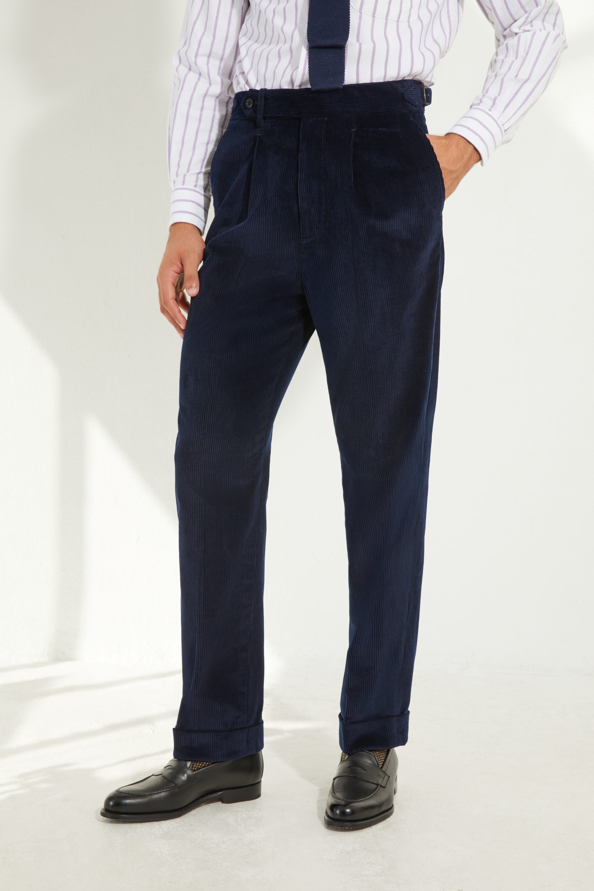 Our trousers feature a high waist, designed to sit at the waist with pleats for added comfort and a classic style.