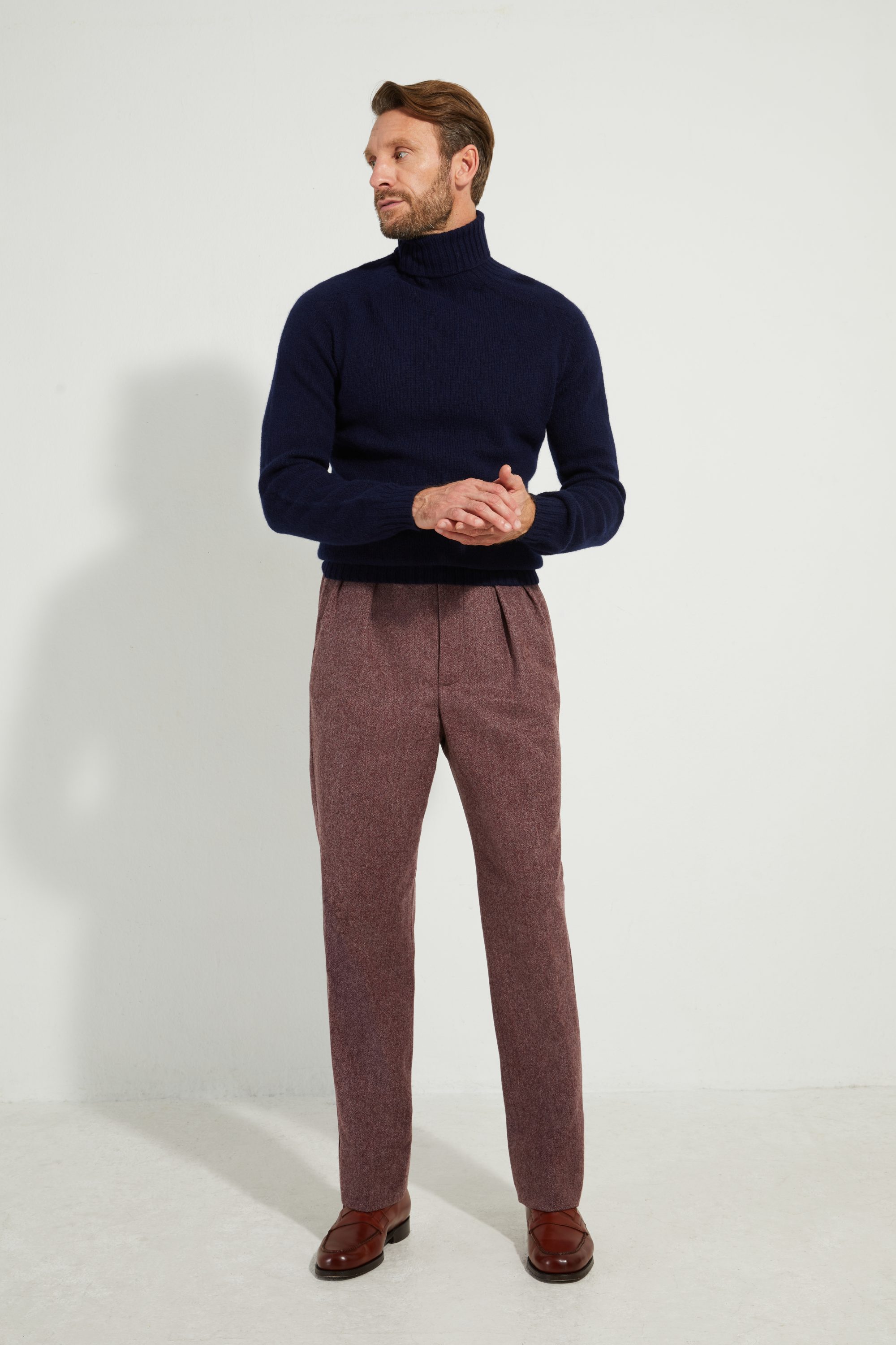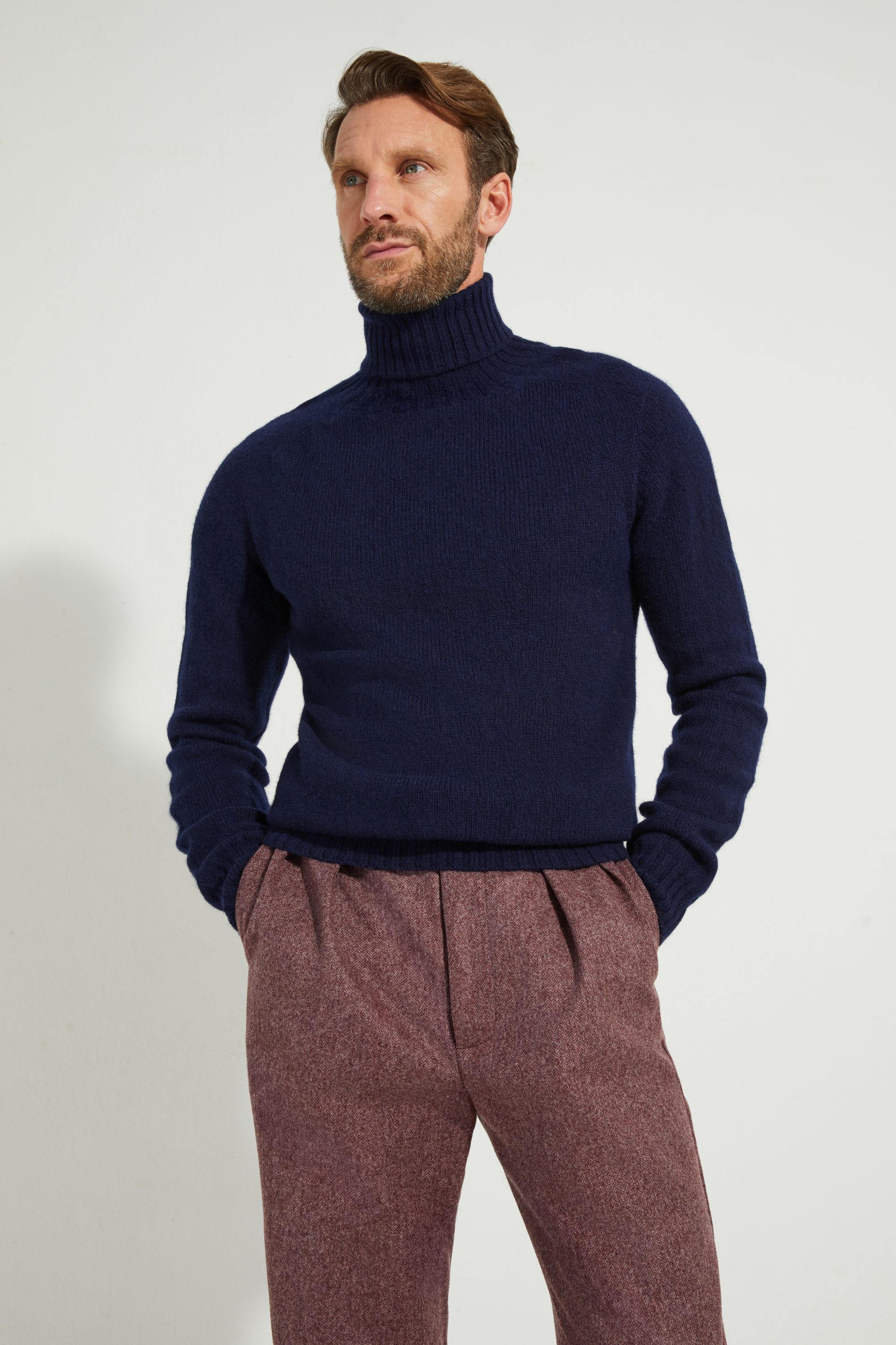 Our sweater is made from 100% pure Shetland virgin wool sourced from a Scottish mill.