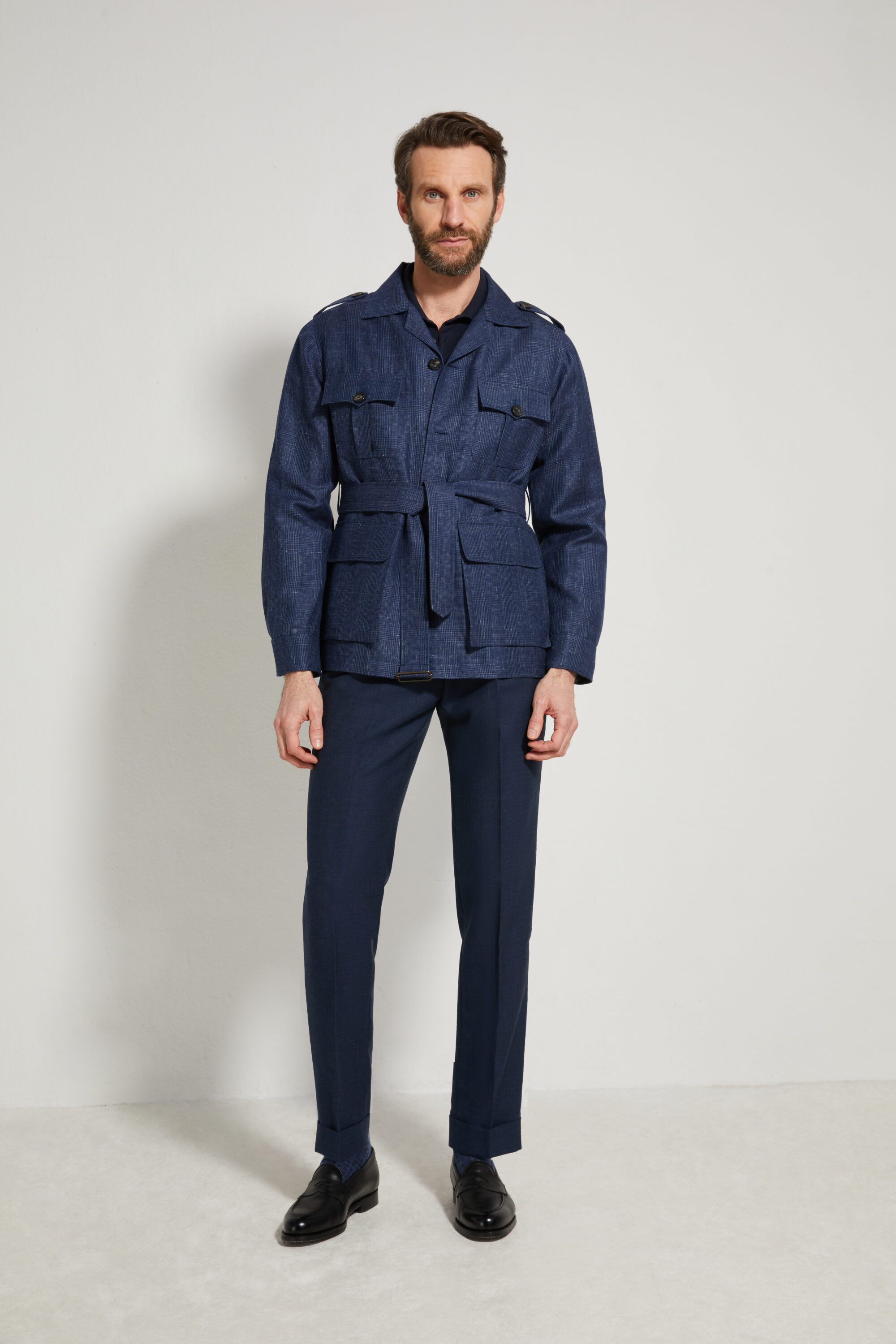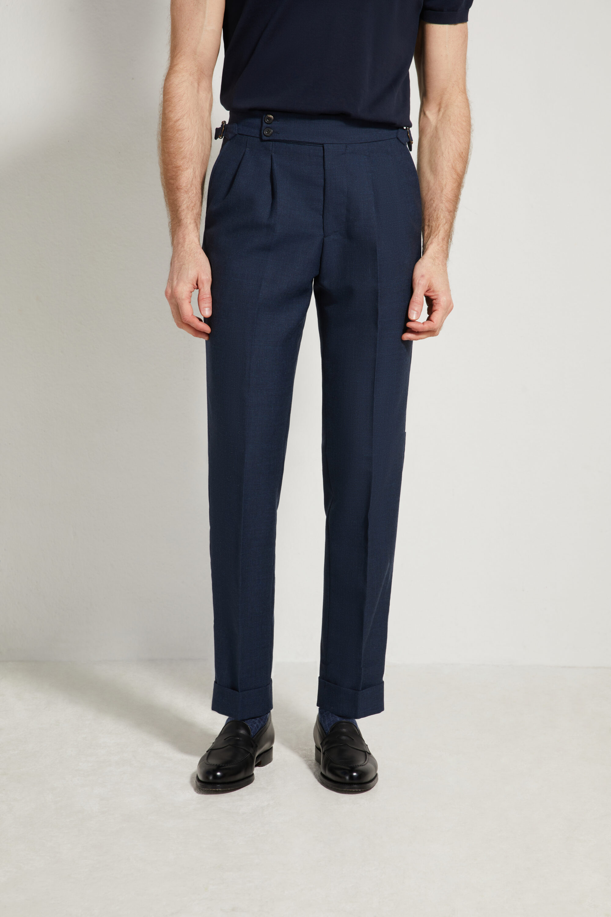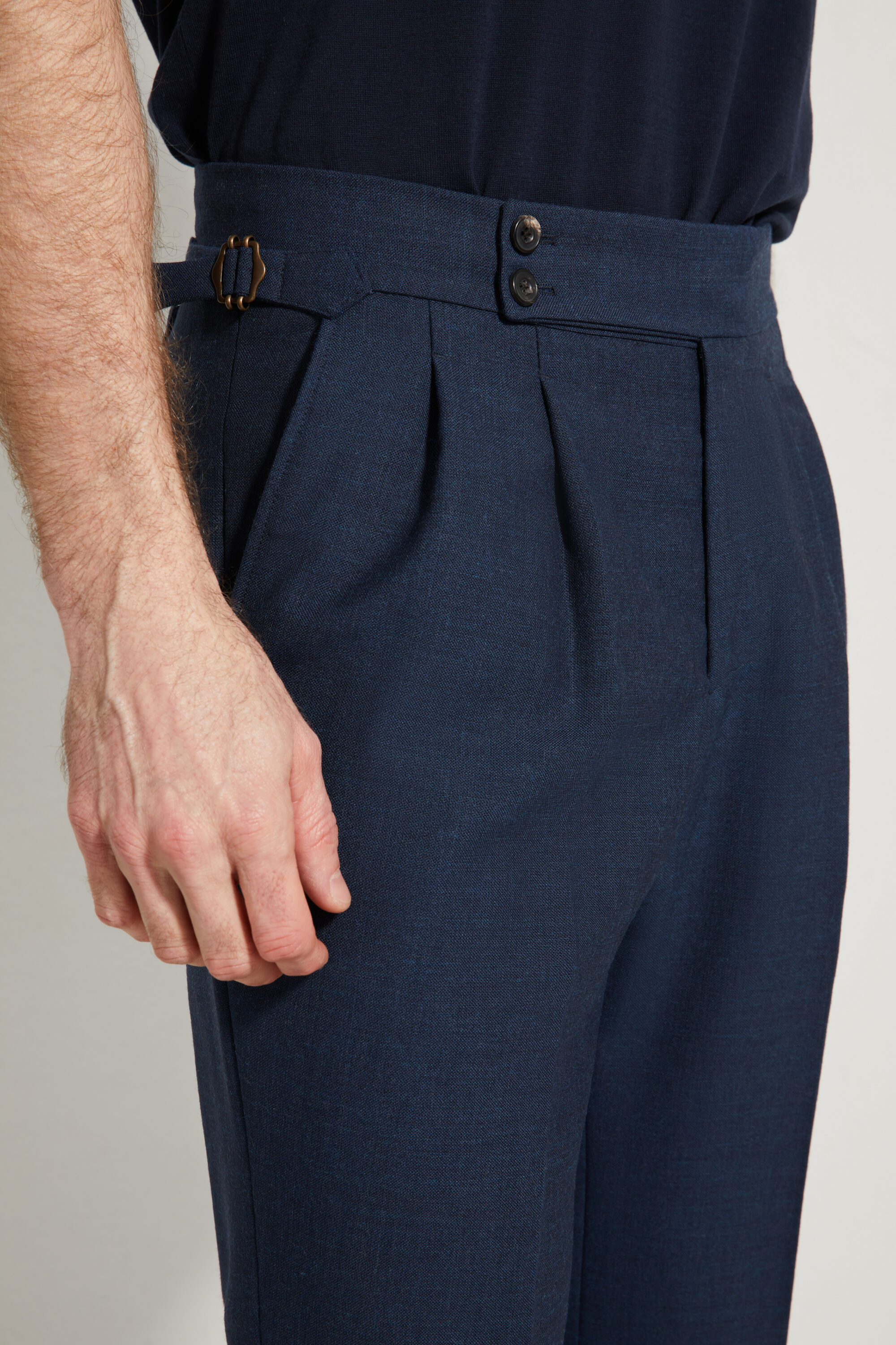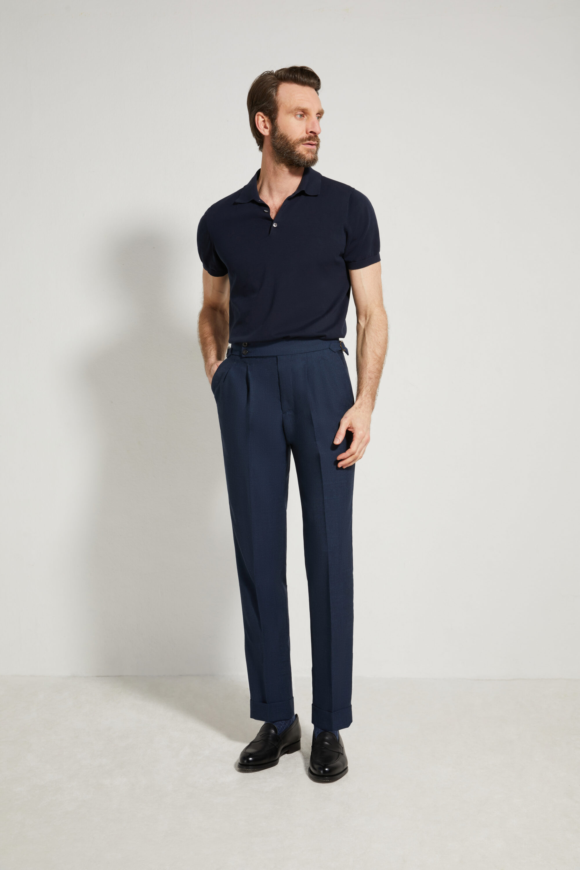 Notre pantalon adopte une coupe ajustée, inspirée du style italien : une ligne plus proche de la jambe, fuselée, nette et élégante, pensée pour accompagner une silhouette contemporaine tout en restant sartoriale.