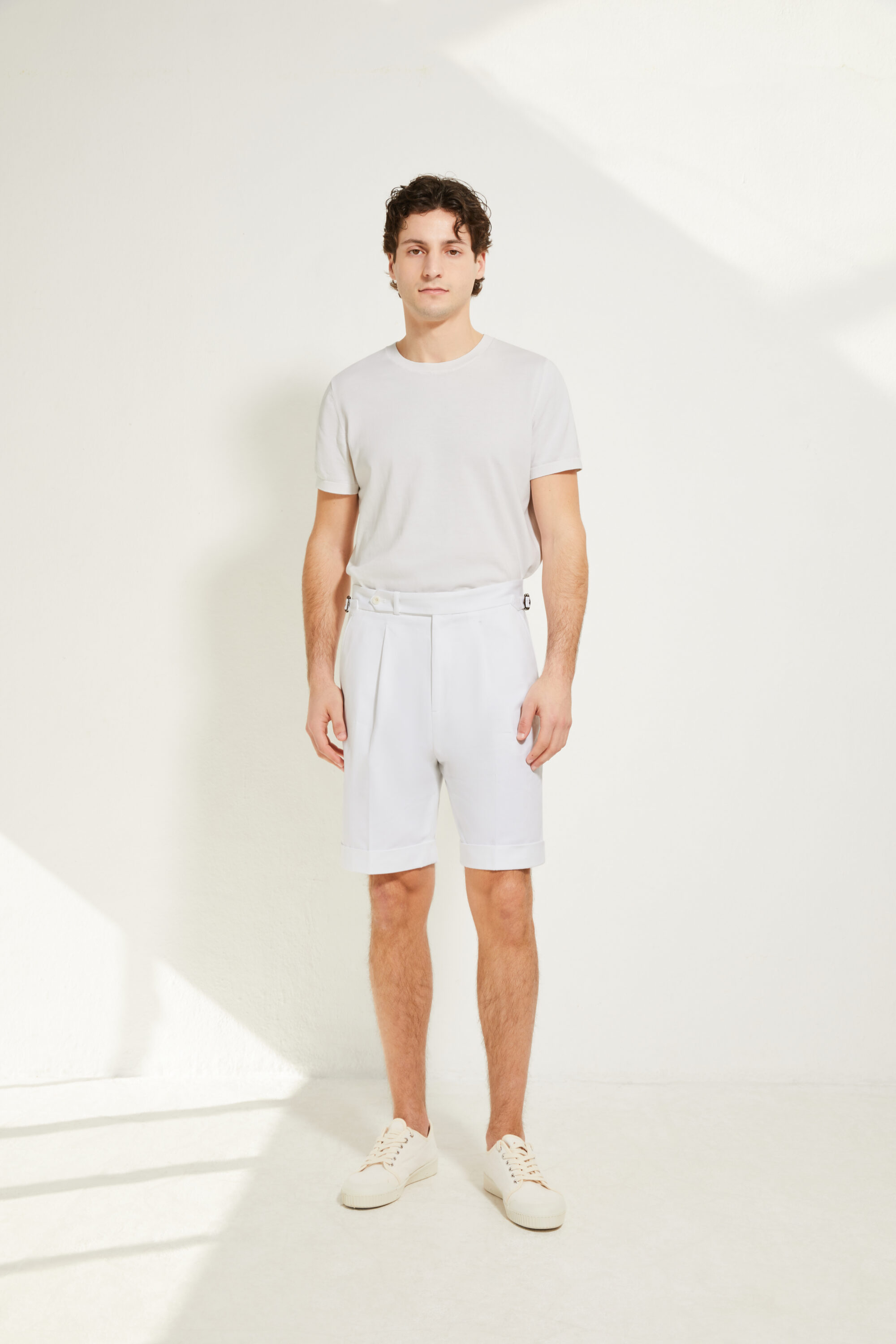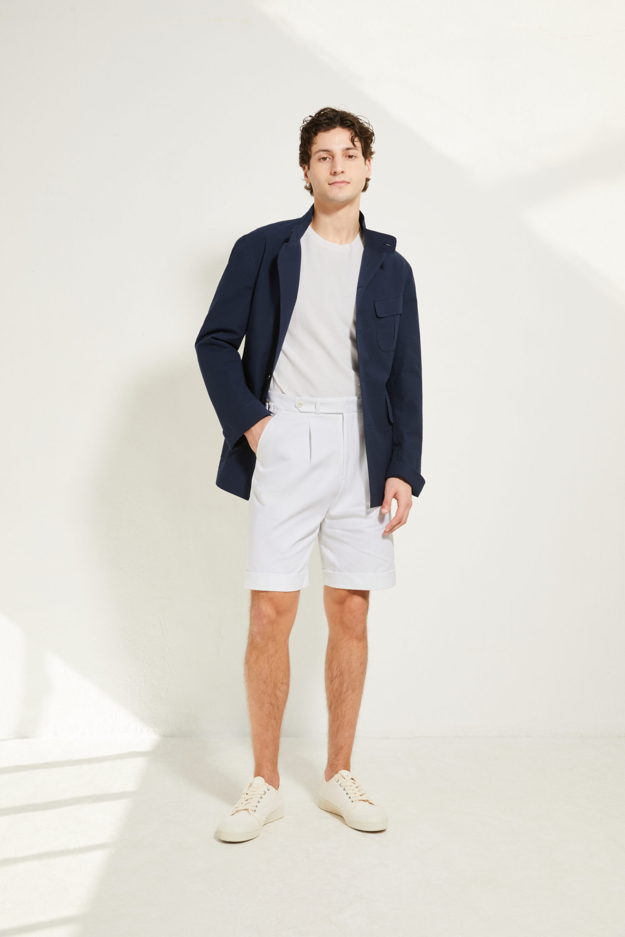 Ce bermuda reprend la coupe et l’allure de notre pantalon à pince emblématique, dans une version plus courte pensée pour les beaux jours.