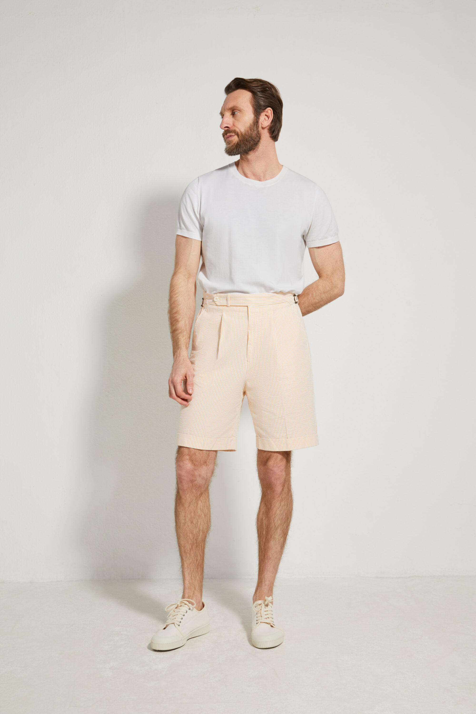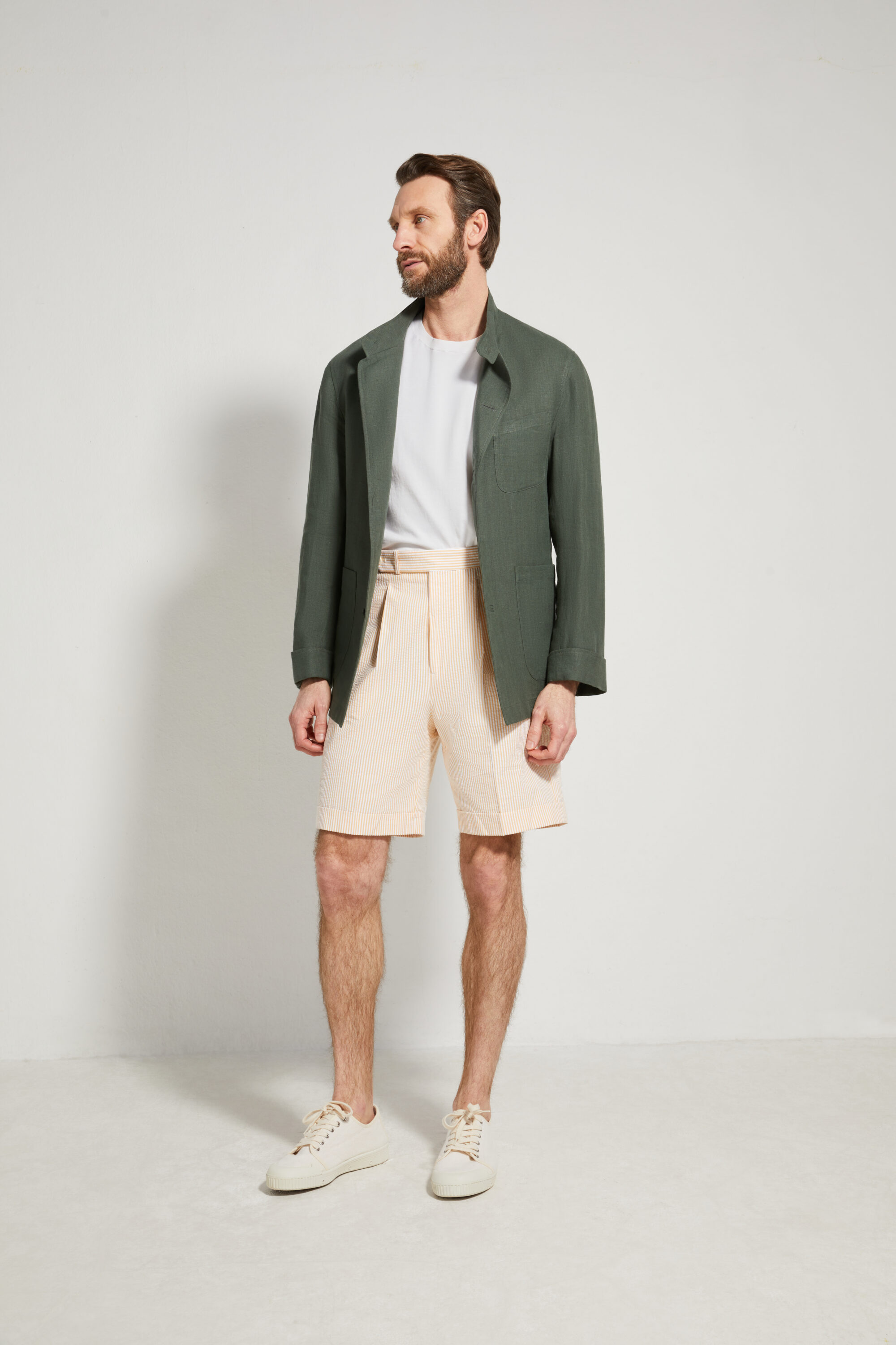 Ce bermuda reprend la coupe et l’allure de notre pantalon à pince emblématique, dans une version plus courte pensée pour les beaux jours.