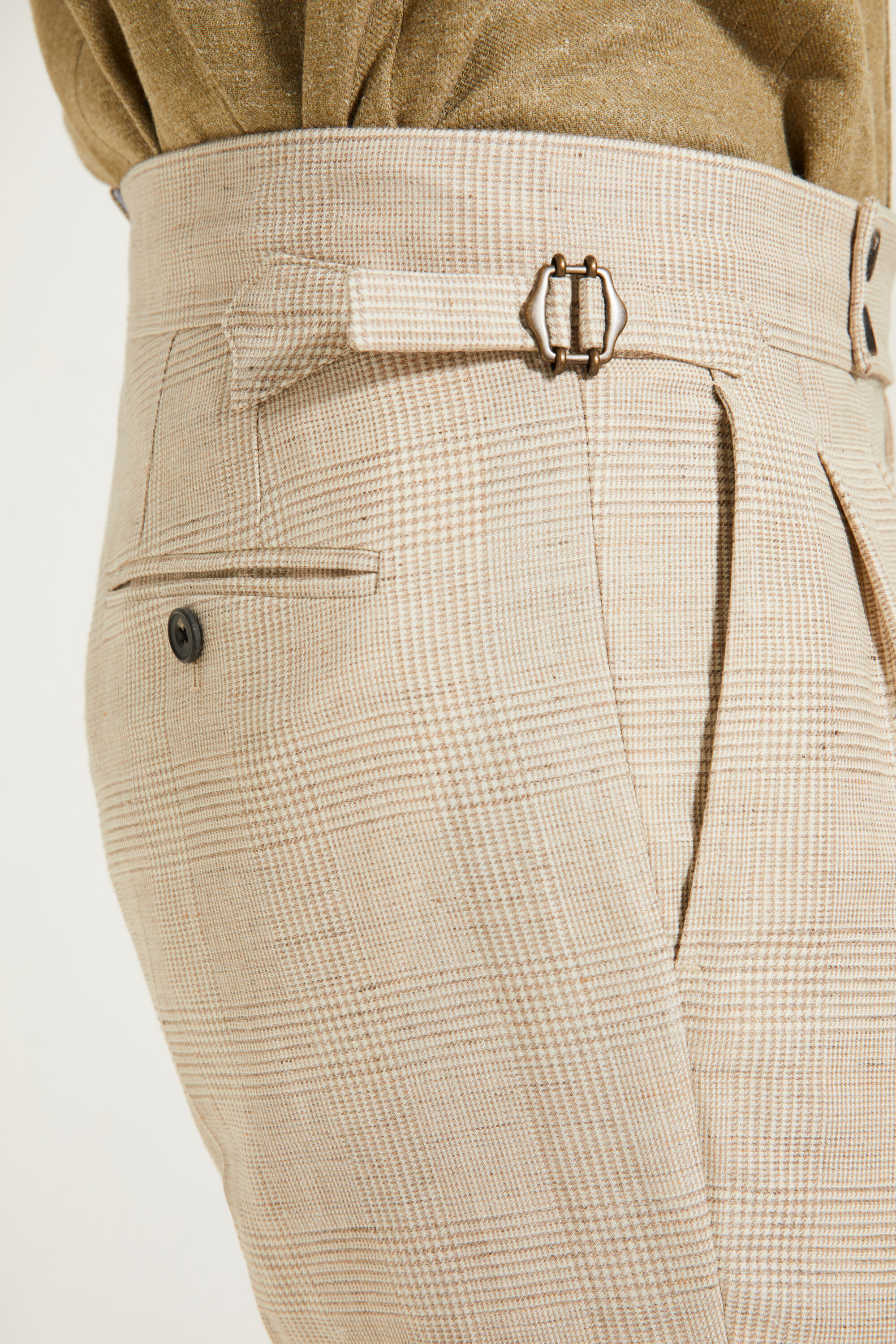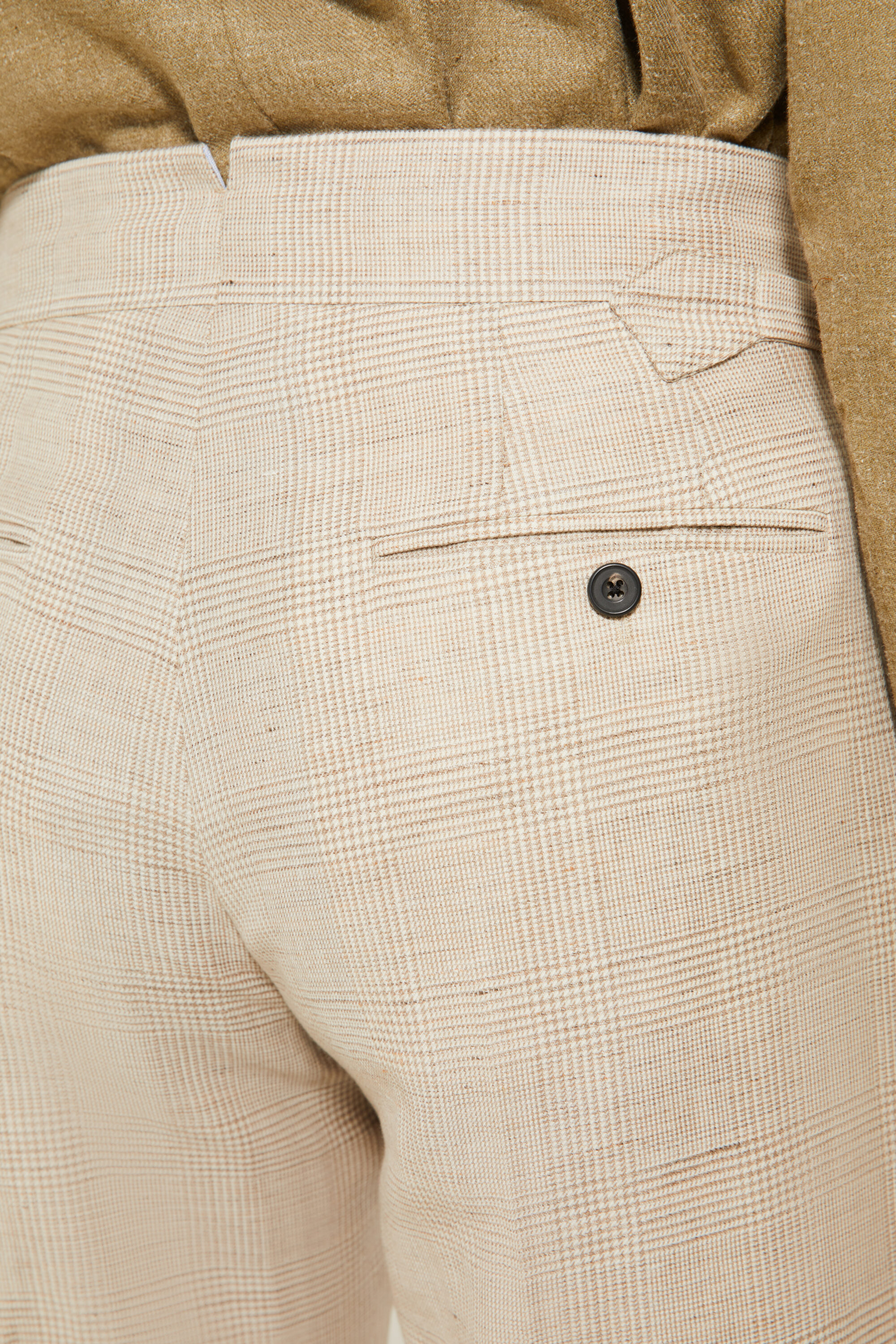 •⁠ ⁠Deux poches arrière passepoilées, fermées par boutons en corne véritable