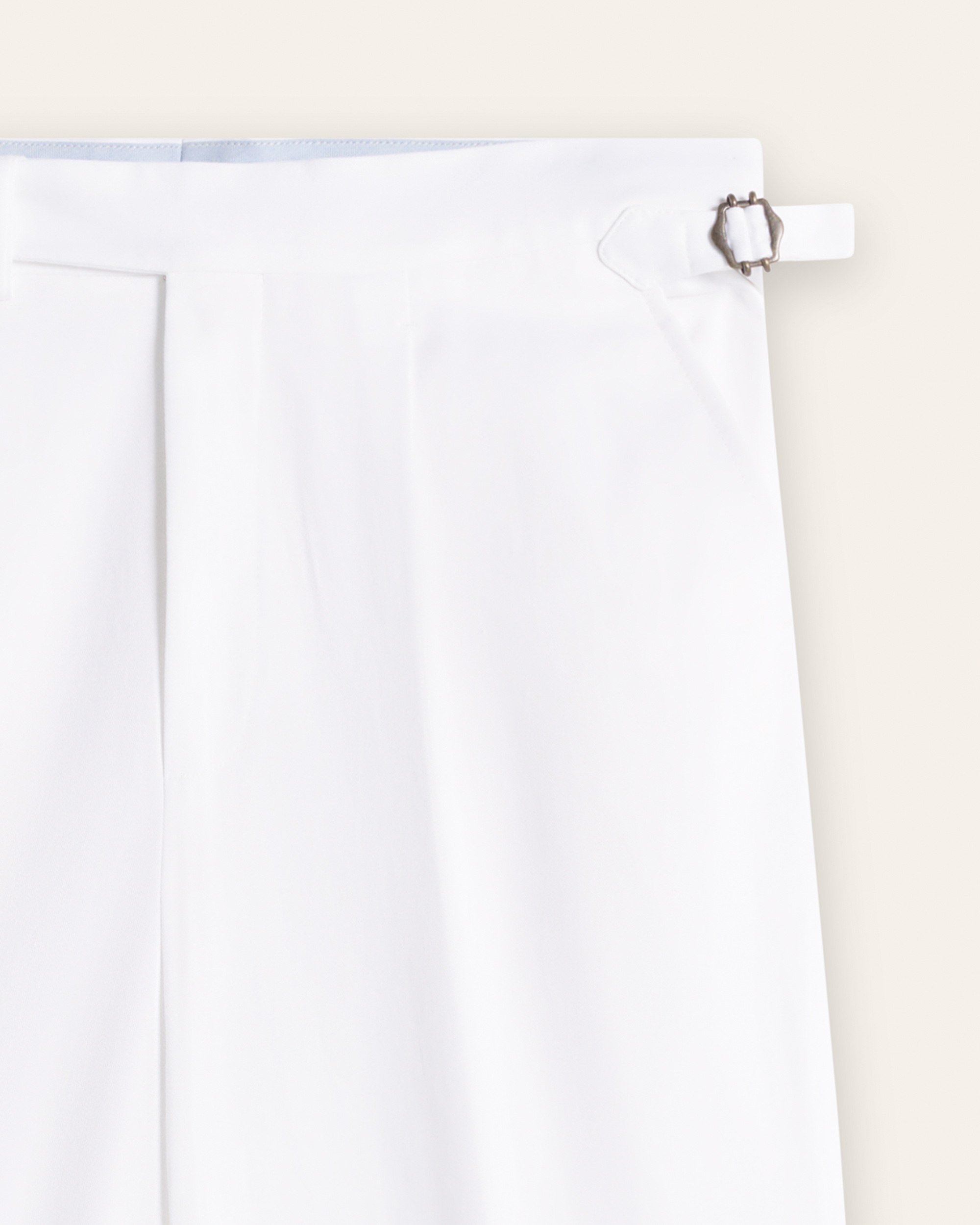 Conçu avec de l’aisance autour de la cuisse et un léger effilement pour une ligne nette sur toute la jambe, il est doté de pattes de serrage latérales, d’une ceinture entoilée, d’une poche pour monnaie et d’une poche arrière. Les ourlets sont laissés non finis pour être ajustés à la longueur souhaitée.
