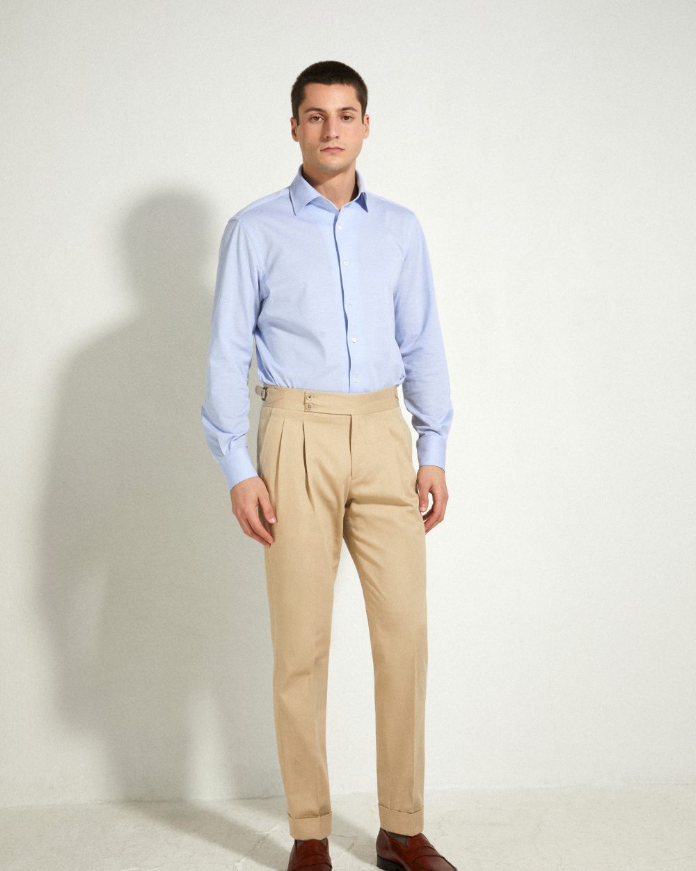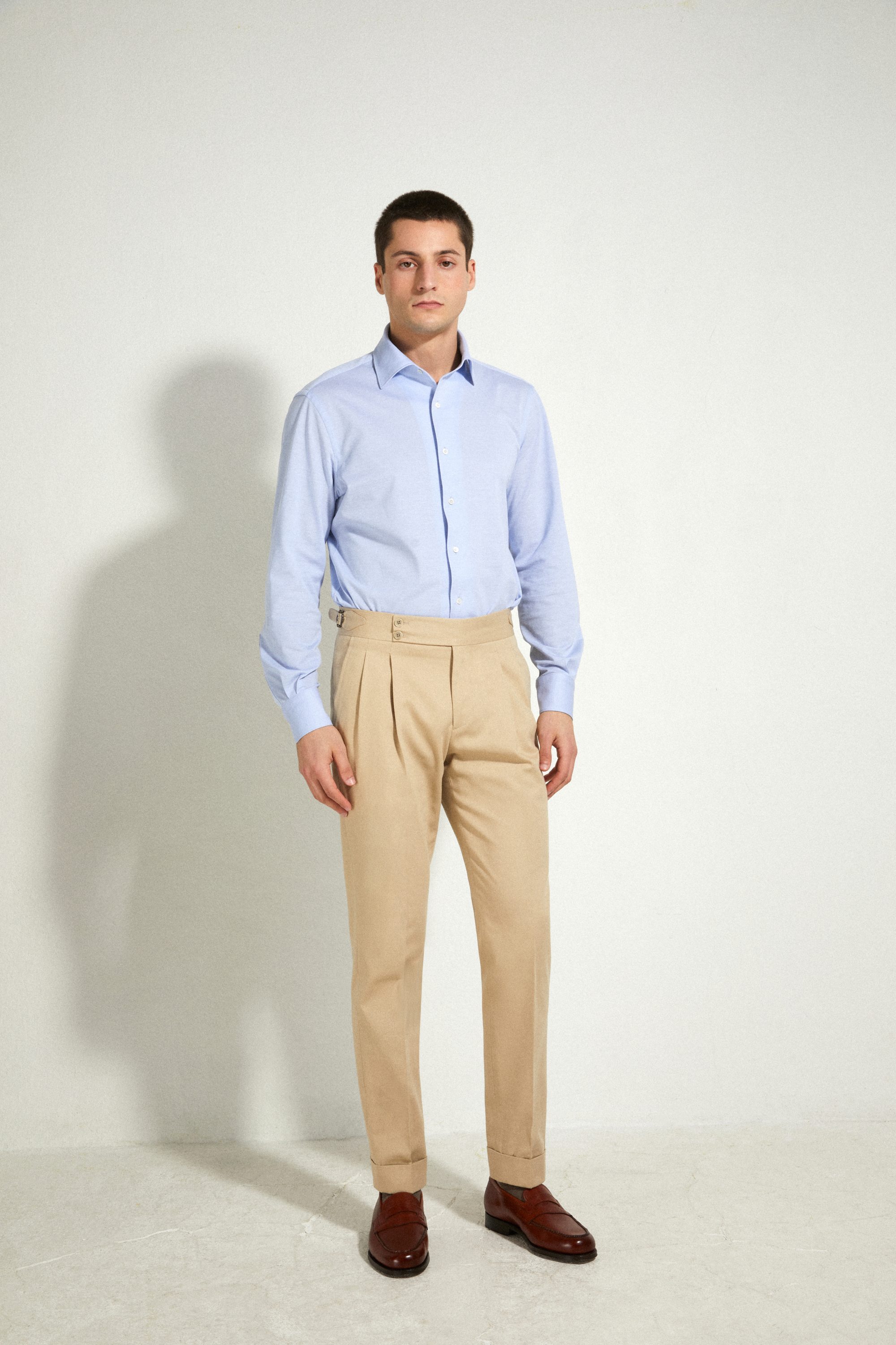 Fabriqué dans un coton sergé Duca Visconti (Italie), ce pantalon est conçu pour être porté pendant les mois les plus frais.