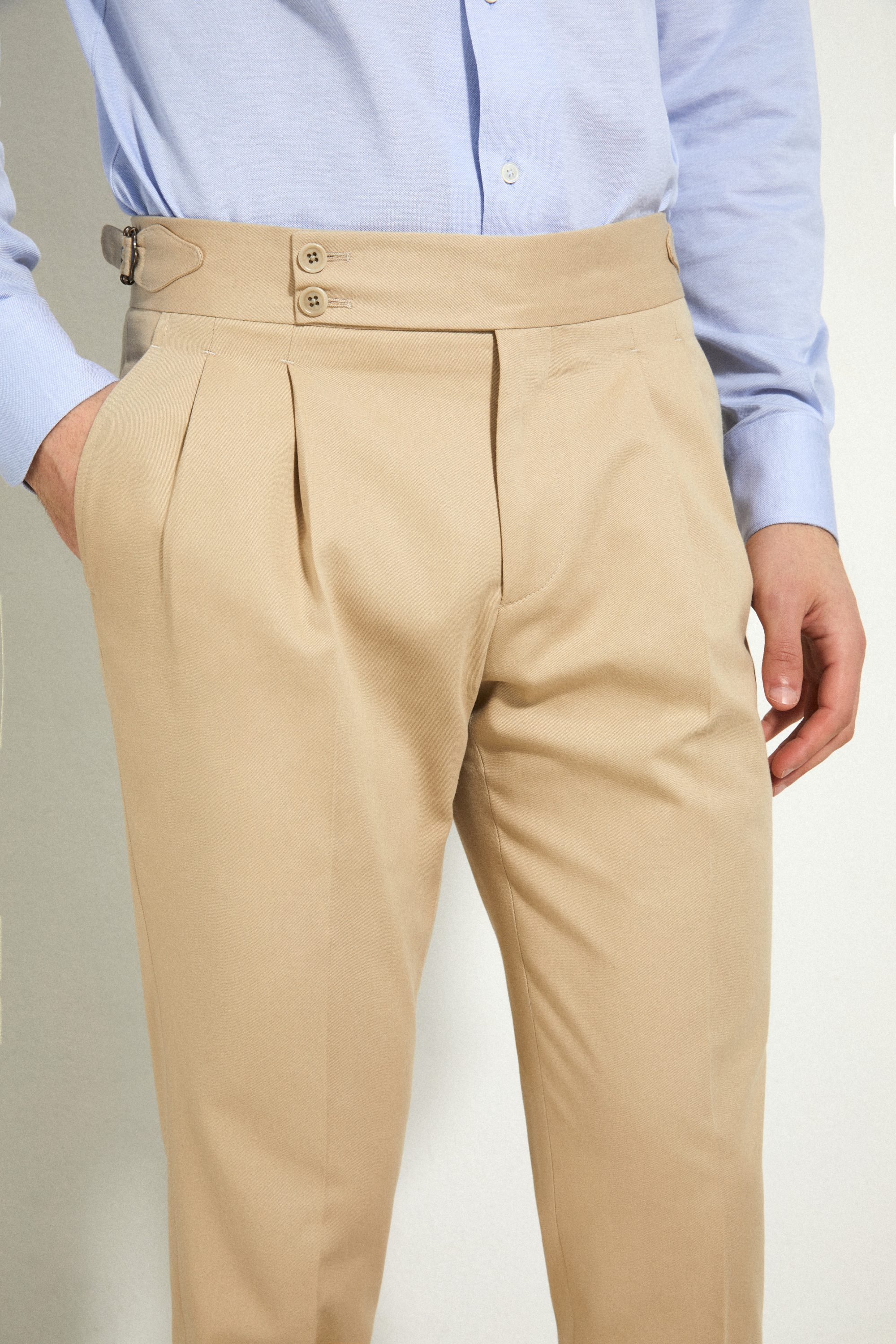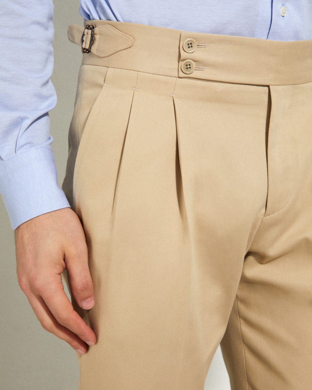 Notre pantalon est conçu pour être porté à la taille naturelle avec deux pinces pour plus de confort et un style sartorial.