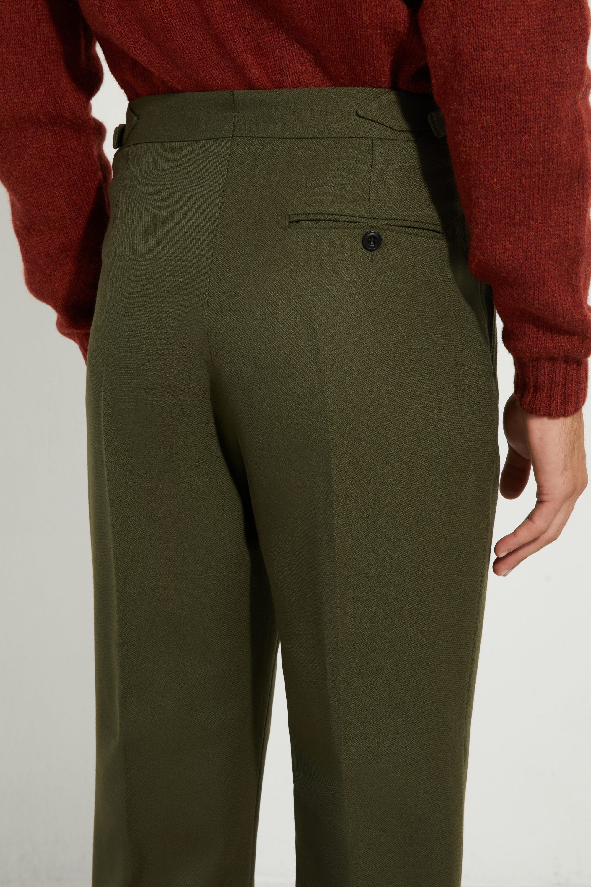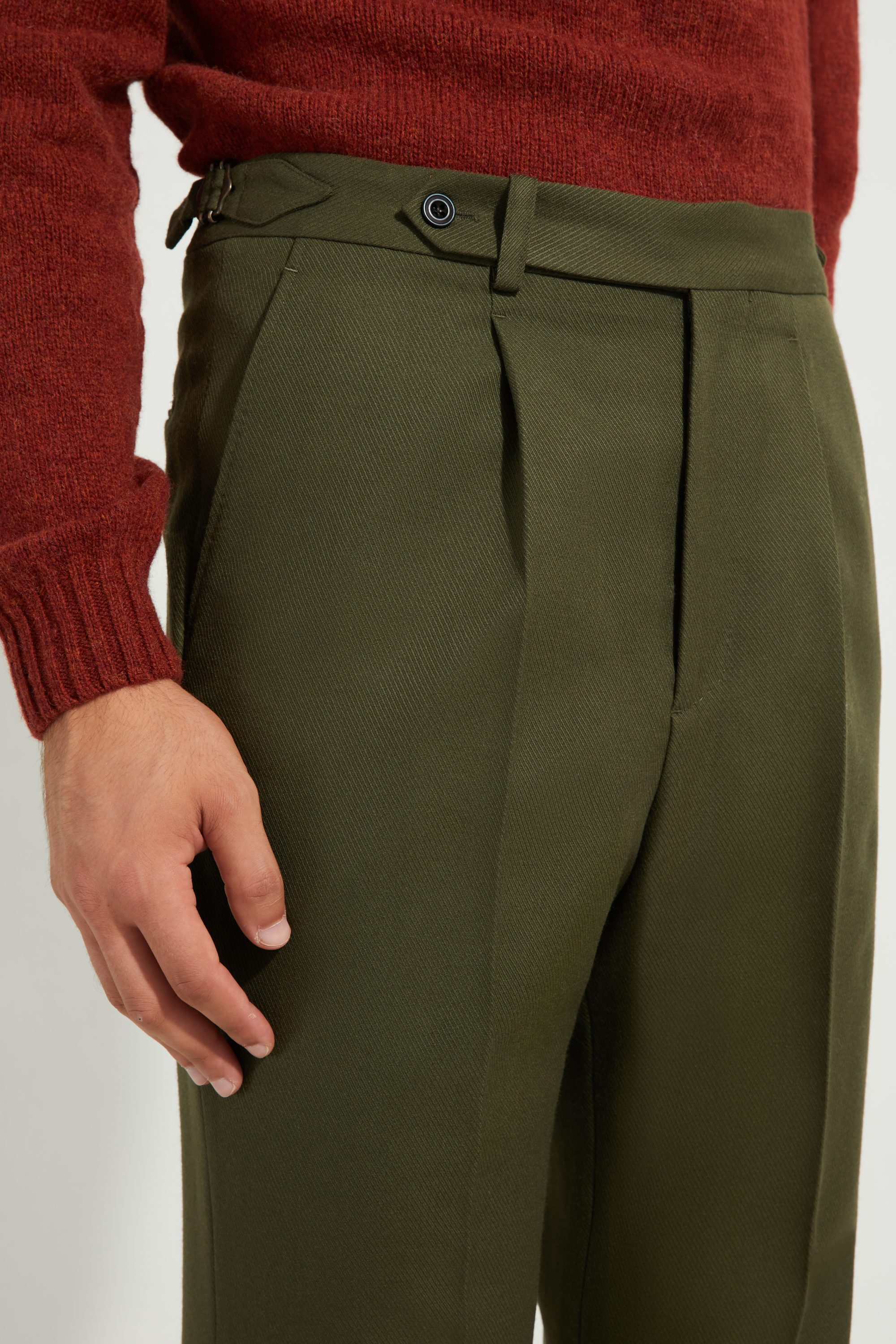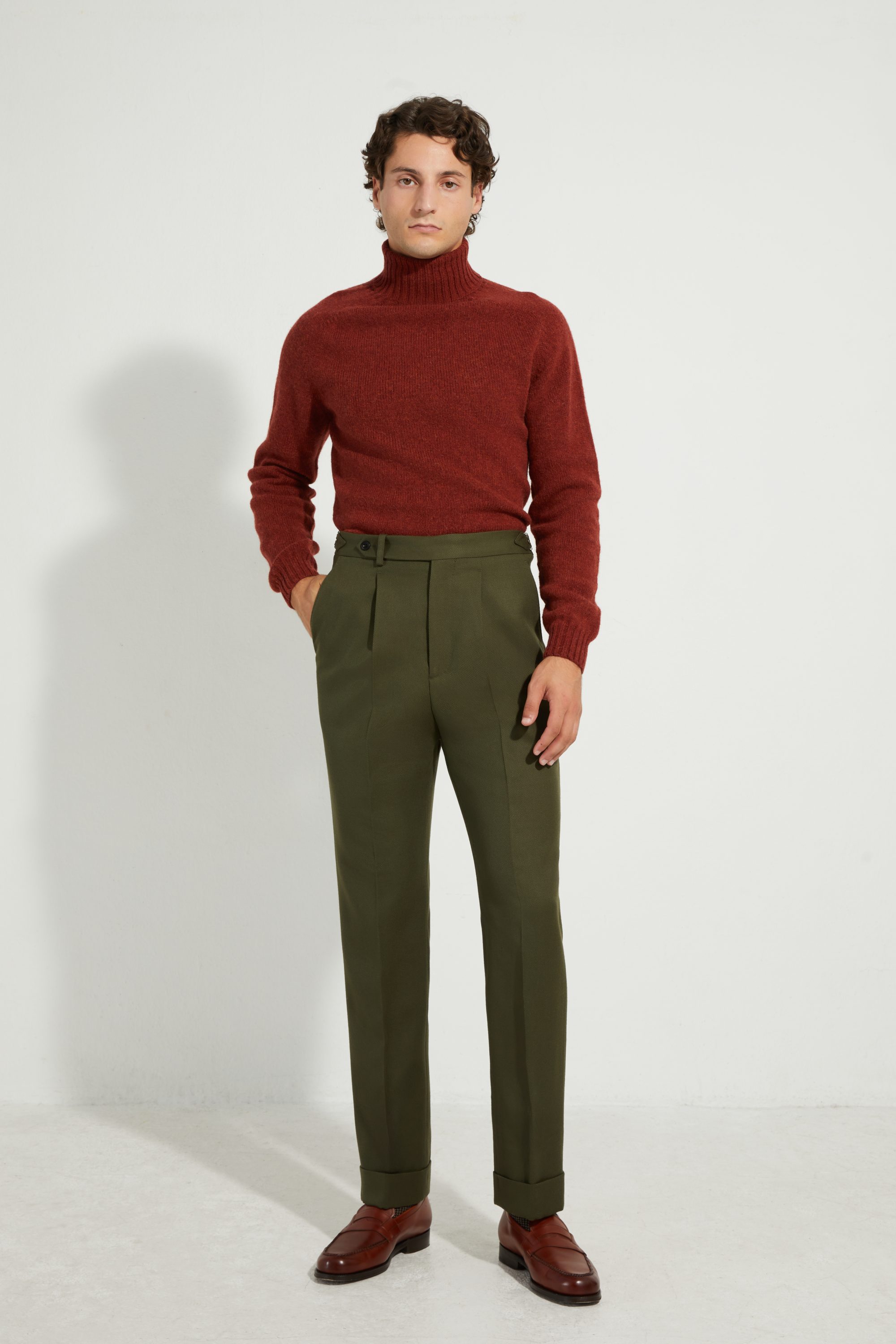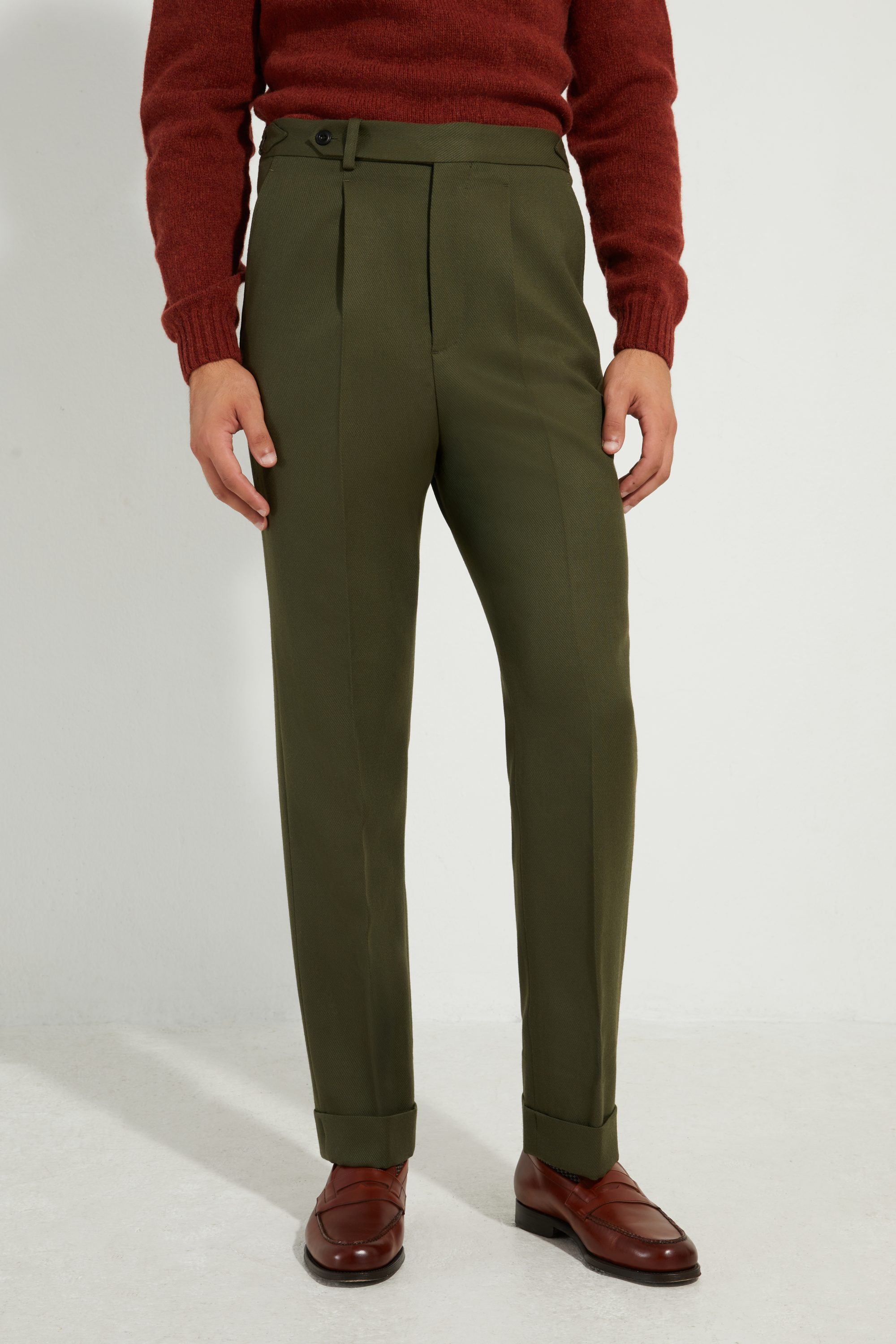 Notre pantalon de flanelle est coupé avec une taille haute, conçu pour être porté à la taille avec une pince pour plus de confort et un style classique.