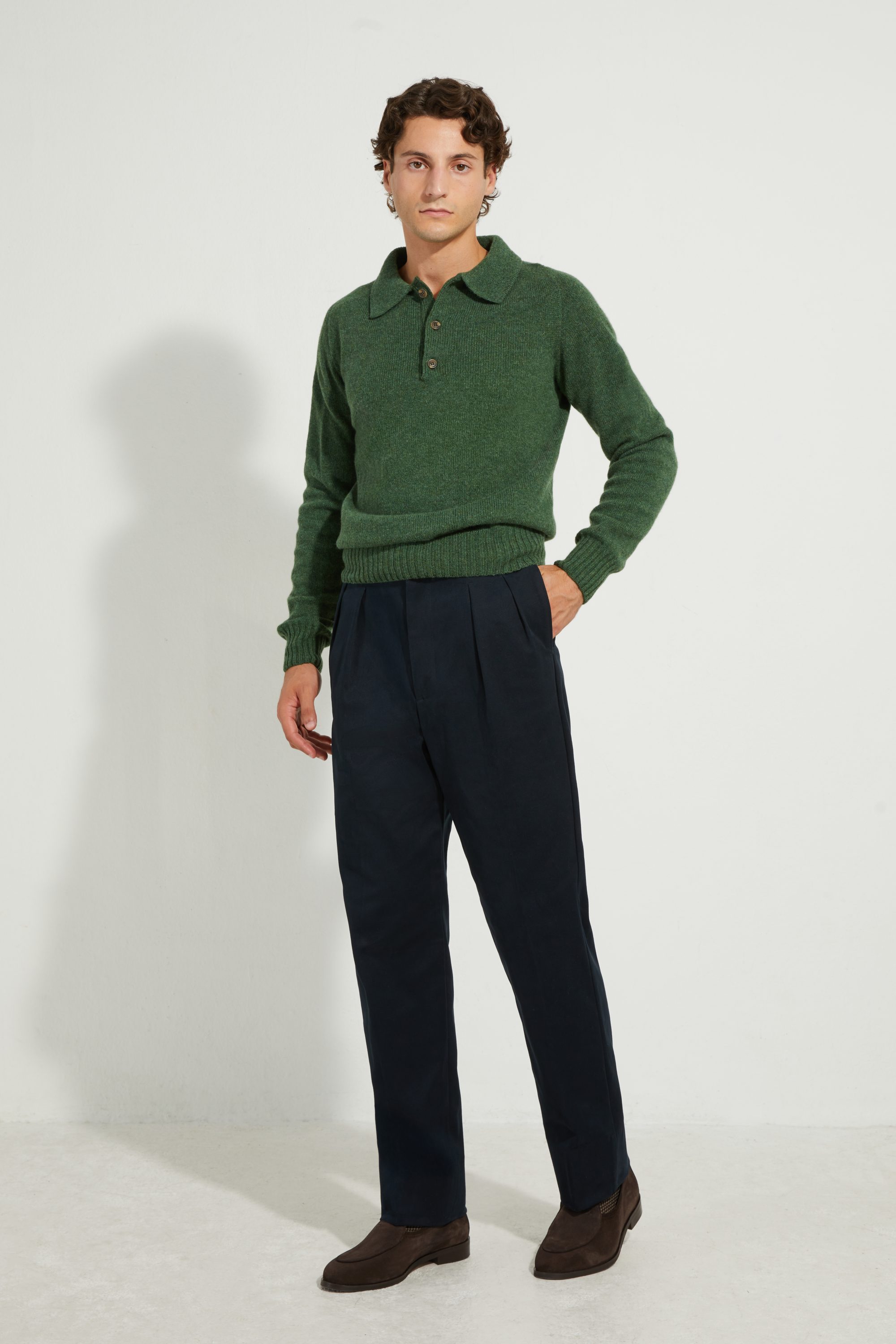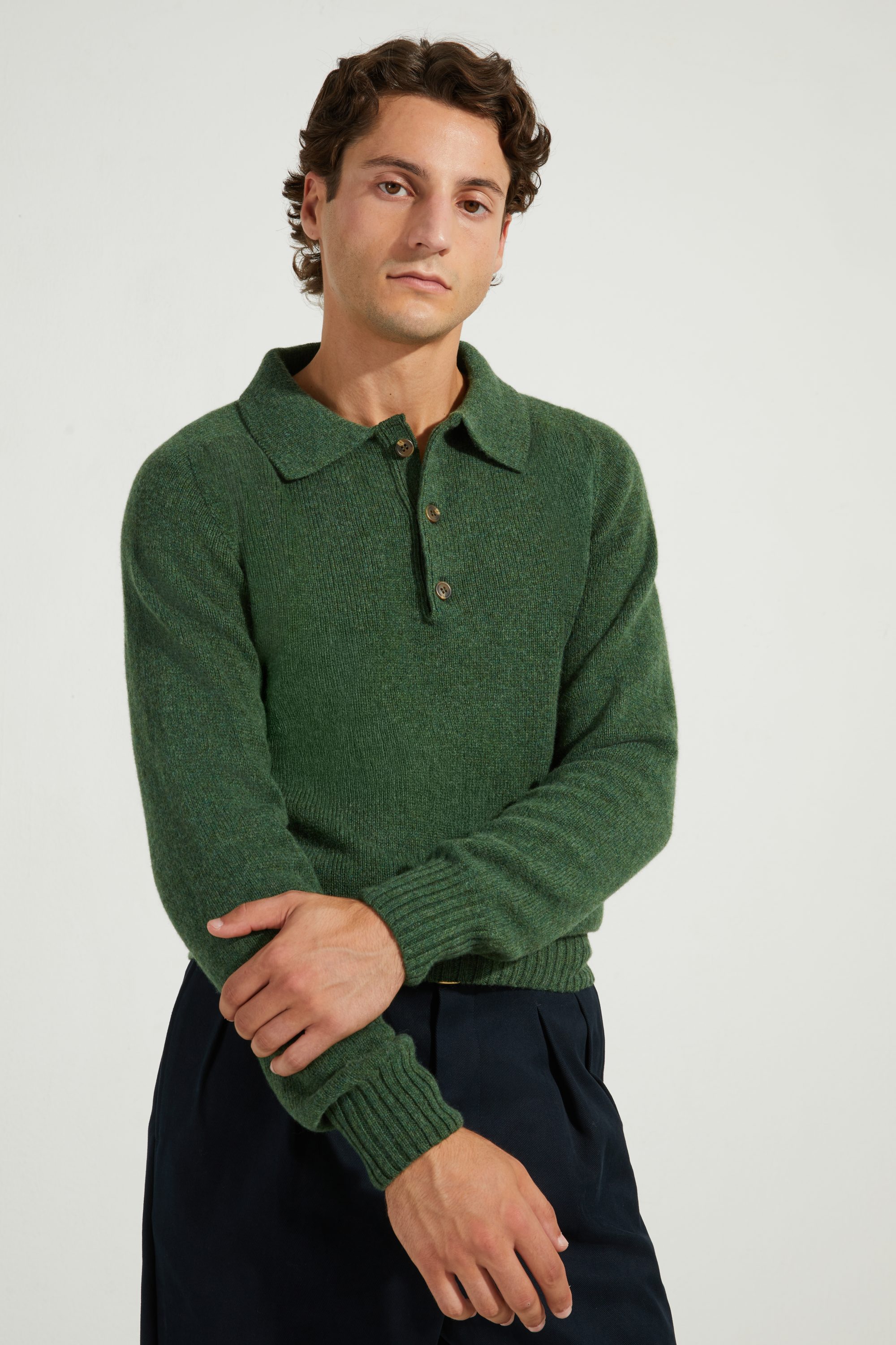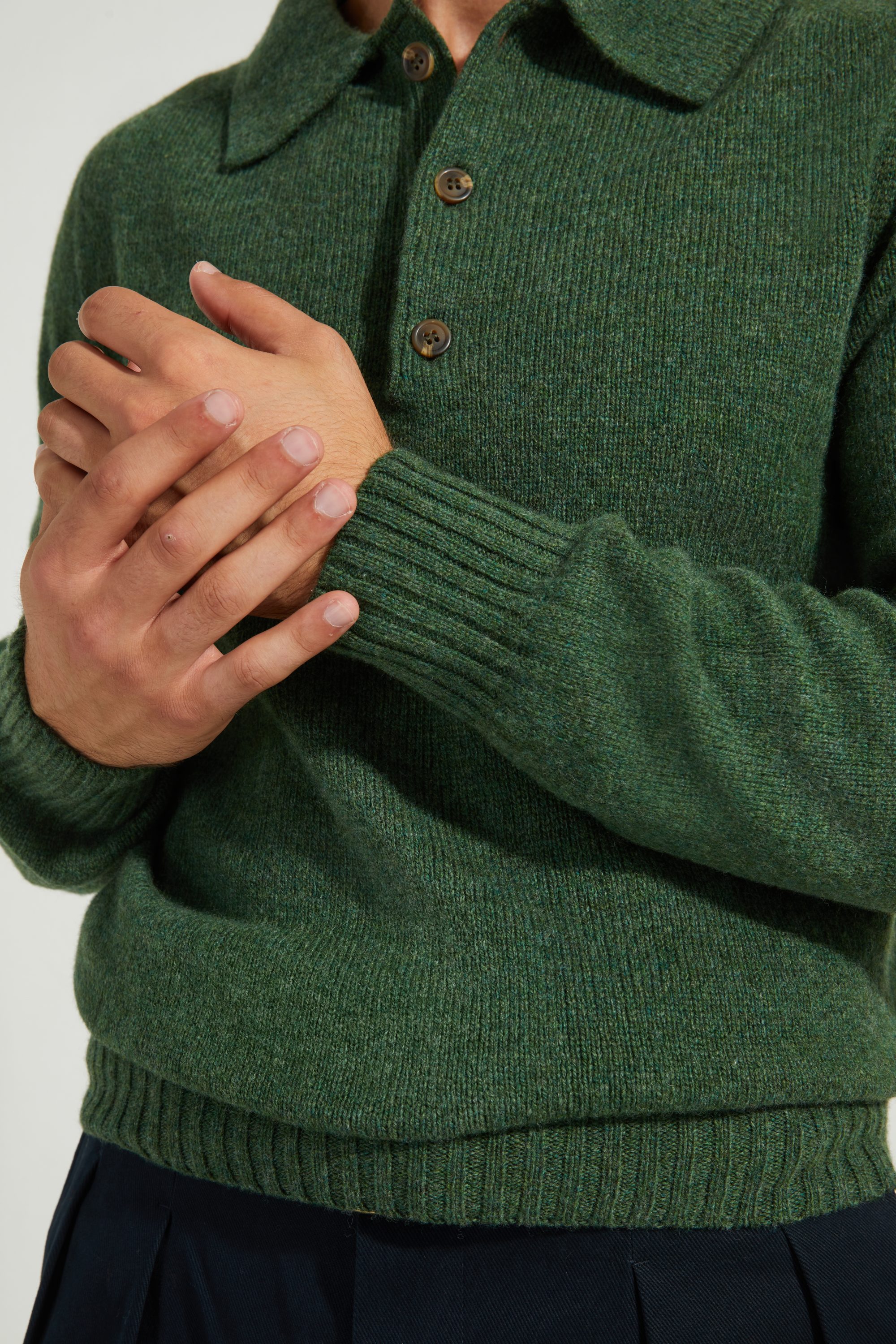 Notre polo en en pure laine vierge Shetland, issu d’une filature écossaise.